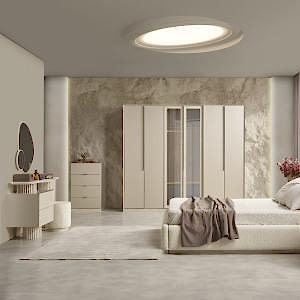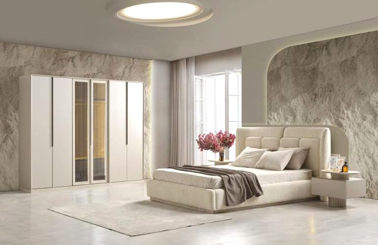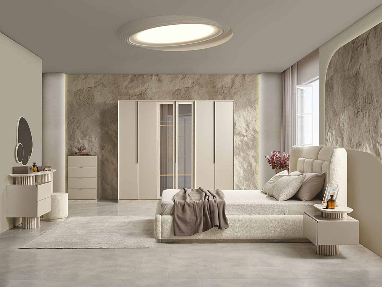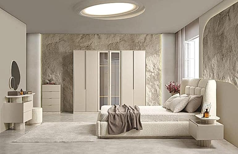 YATAK ODASI TAKIMI: Karyola, karyola başucu, 2 adet komodin, gardorop, şifonyer, şifonyer aynasından oluşmaktadır.