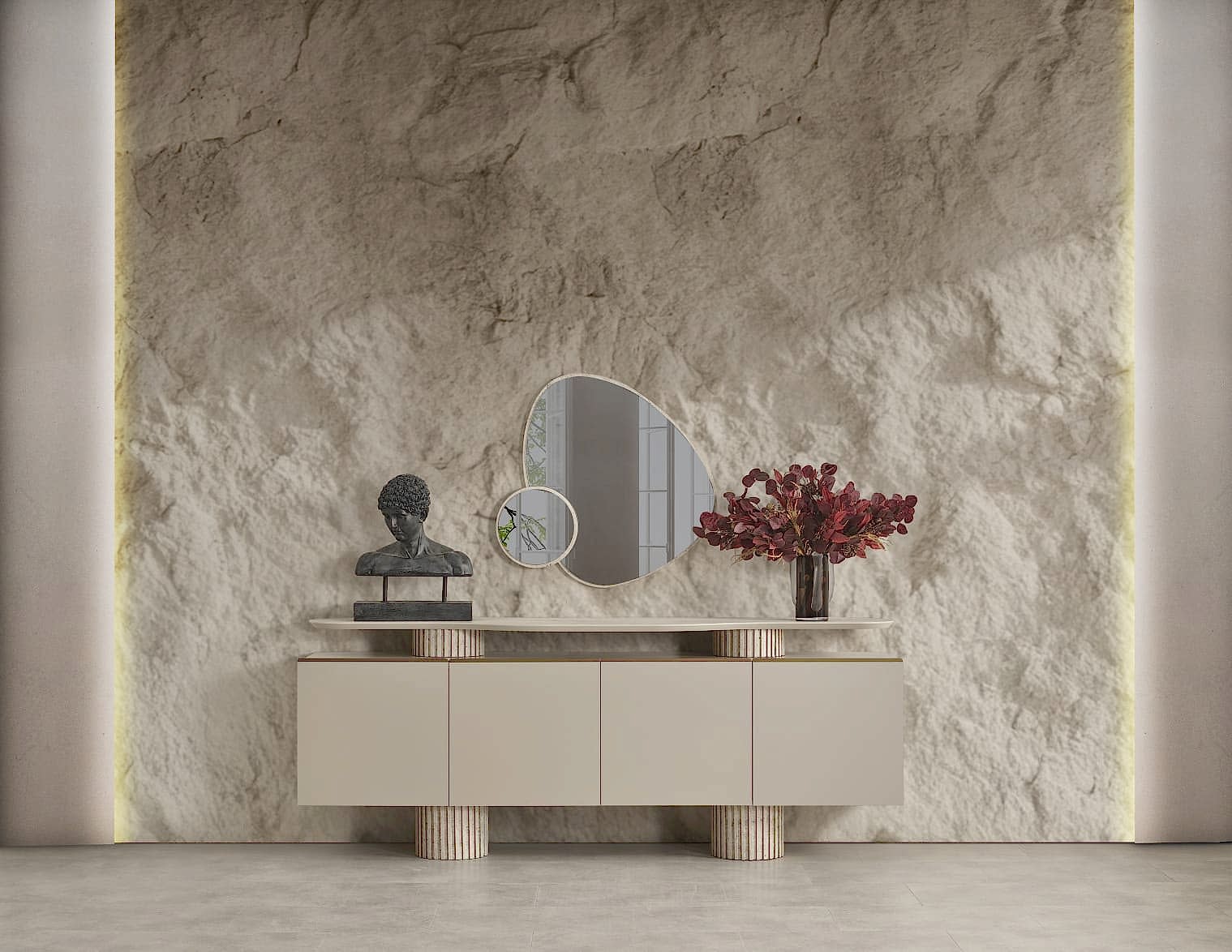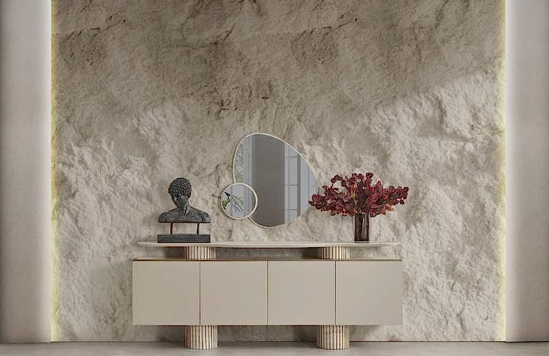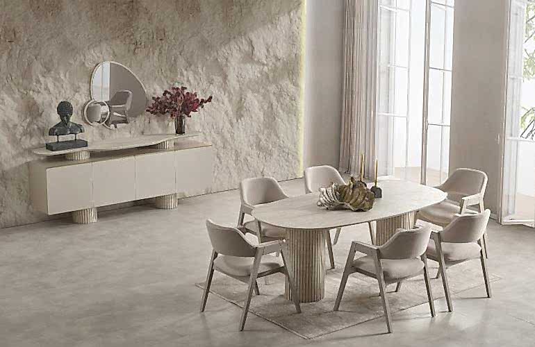 YEMEK ODASI TAKIMI: Konsol ,konsol aynası, yemek masası ve 4 adet baleria sandalyelidir.