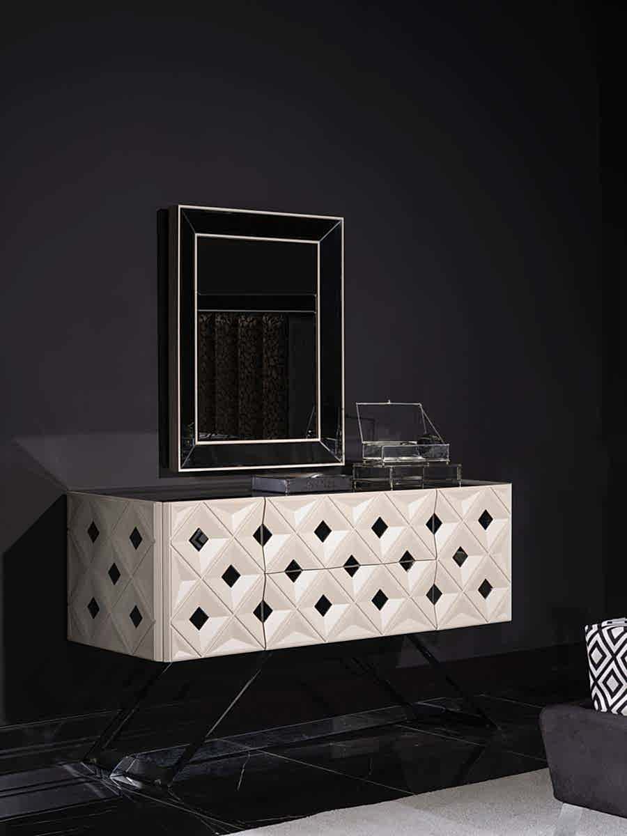 YATAK ODASI TAKIMI: Karyola, karyola başucu, 2 adet komodin, gardorop, şifonyer, şifonyer aynasından oluşmaktadır.