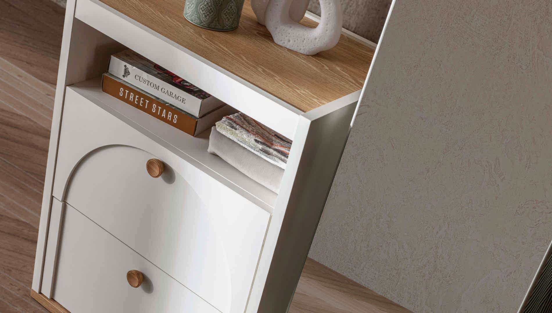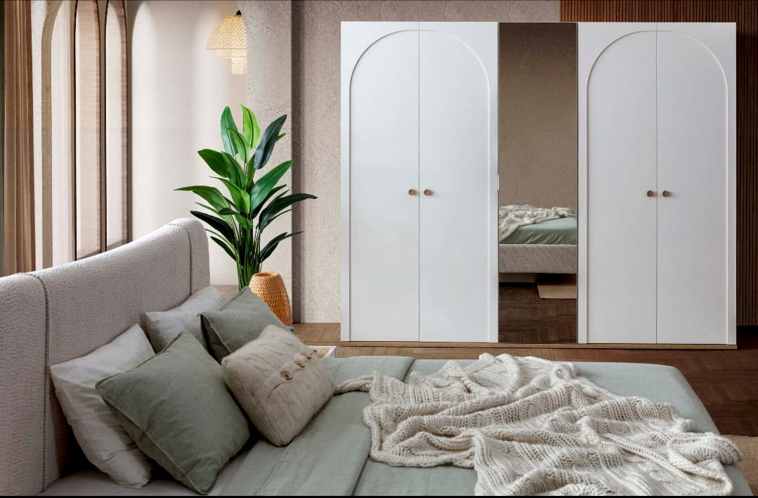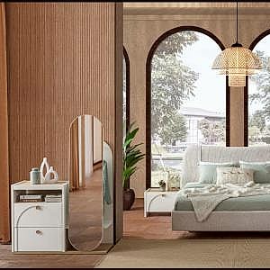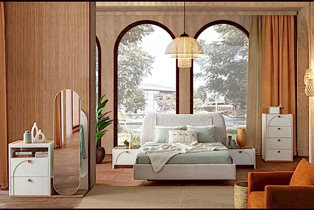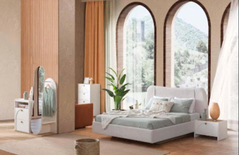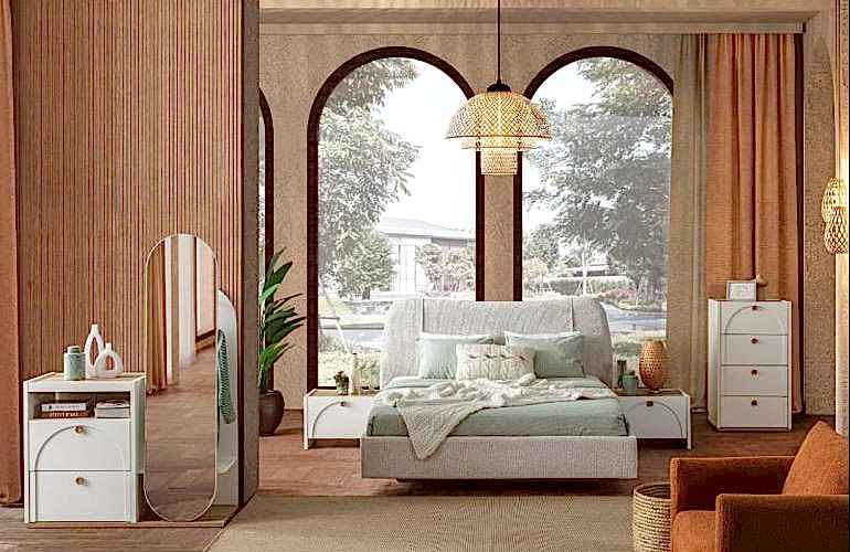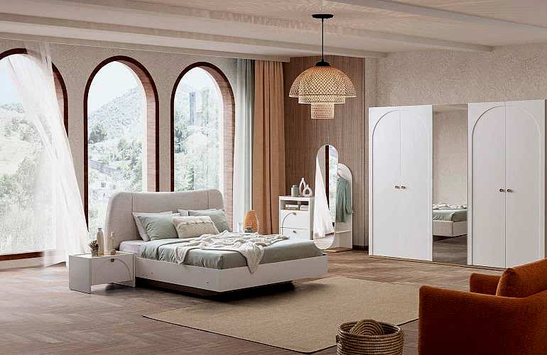 YATAK ODASI TAKIMI: Karyola, karyola başucu, 2 adet komodin, gardorop, şifonyer, şifonyer aynasından oluşmaktadır.