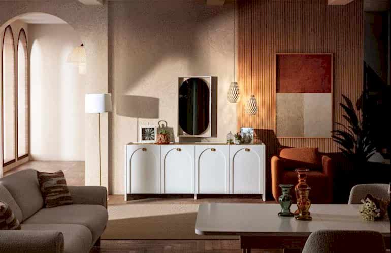 YEMEK ODASI TAKIMI: Konsol ,konsol aynası, yemek masası ve 4 adet polo sandalyelidir.