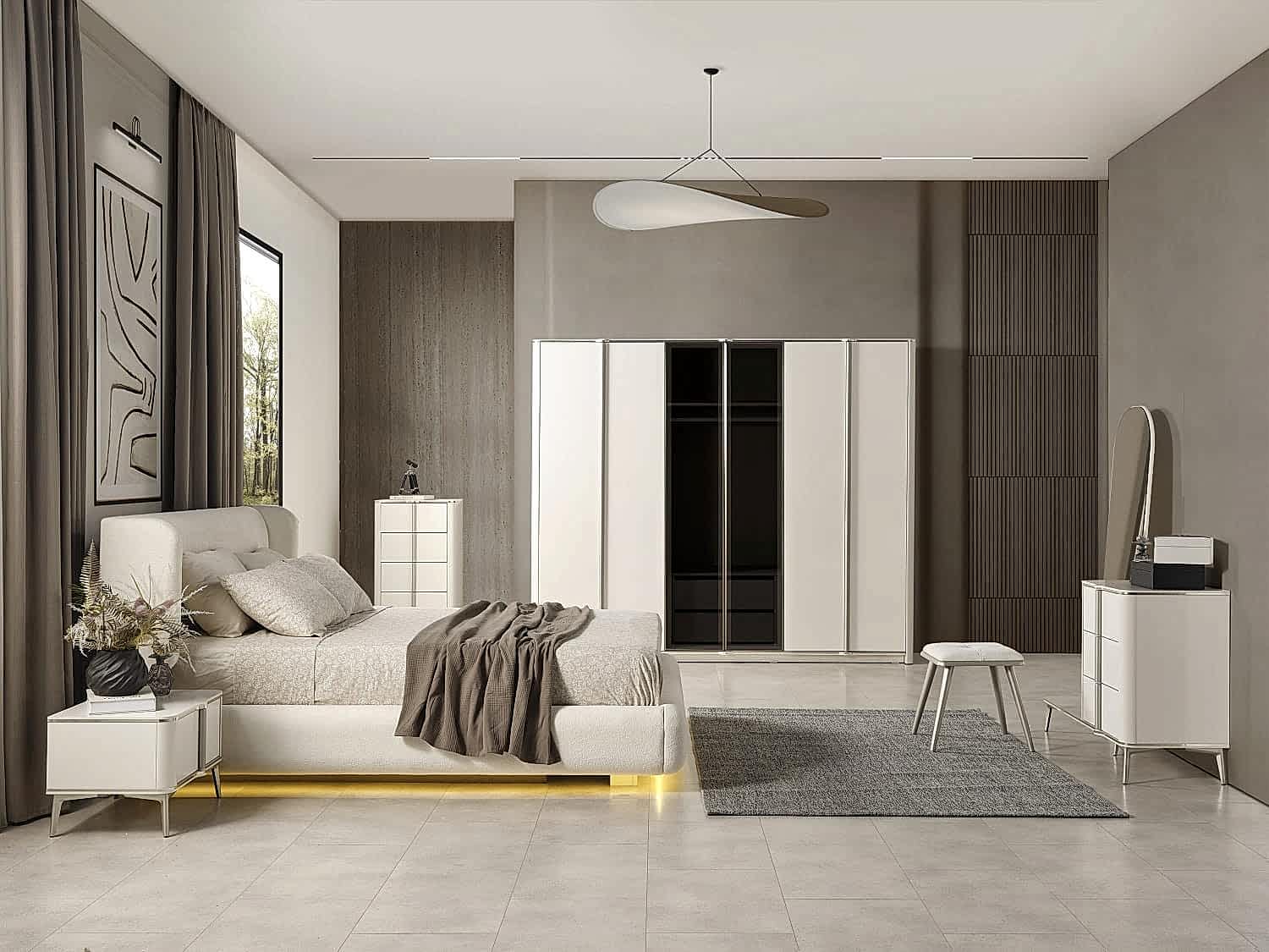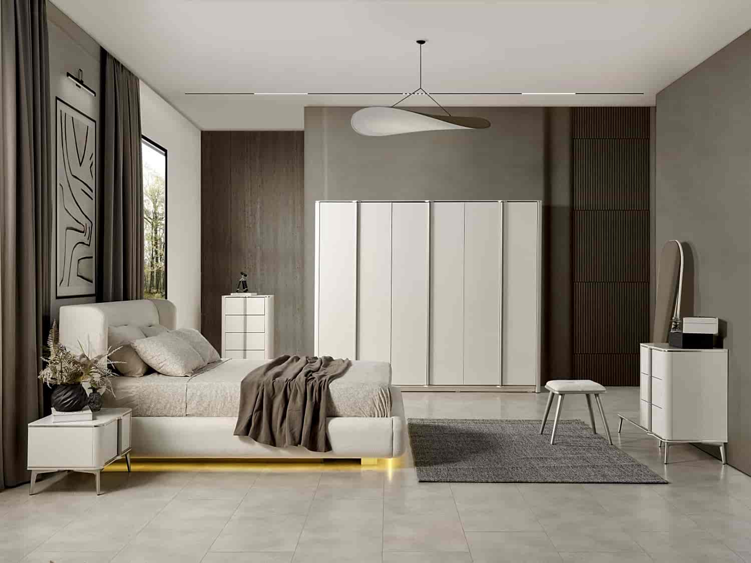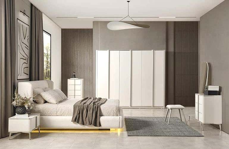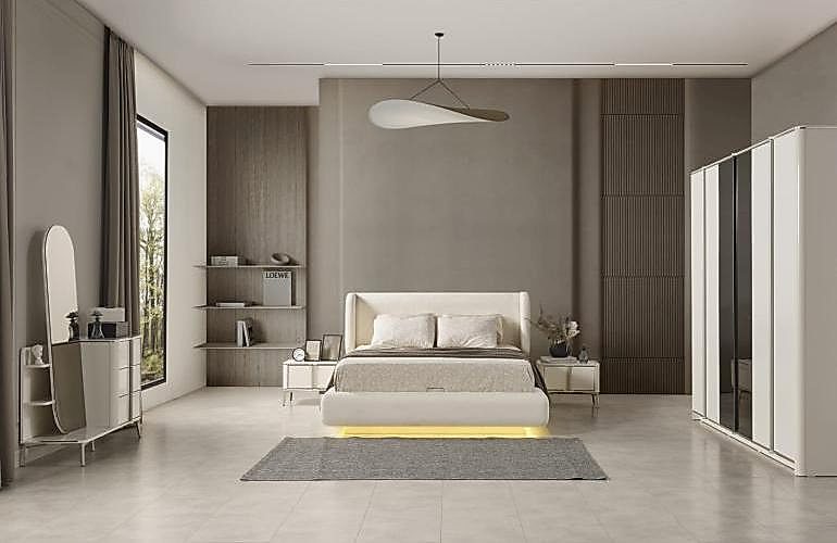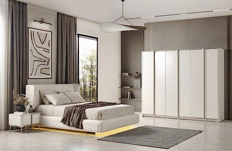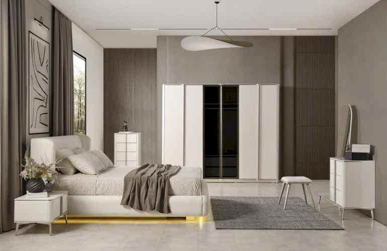 YATAK ODASI TAKIMI: Karyola, karyola başucu, 2 adet komodin, gardorop, şifonyer, şifonyer aynasından oluşmaktadır.