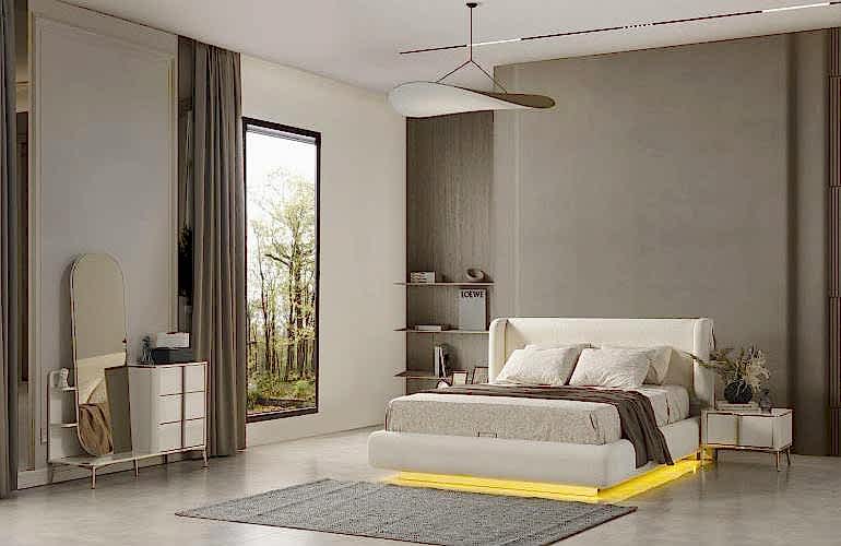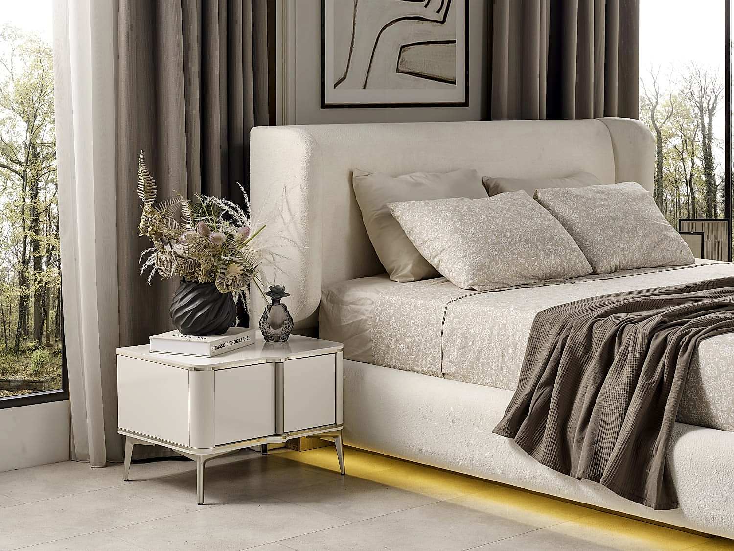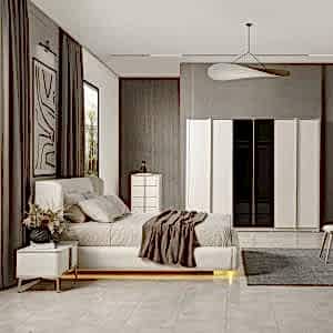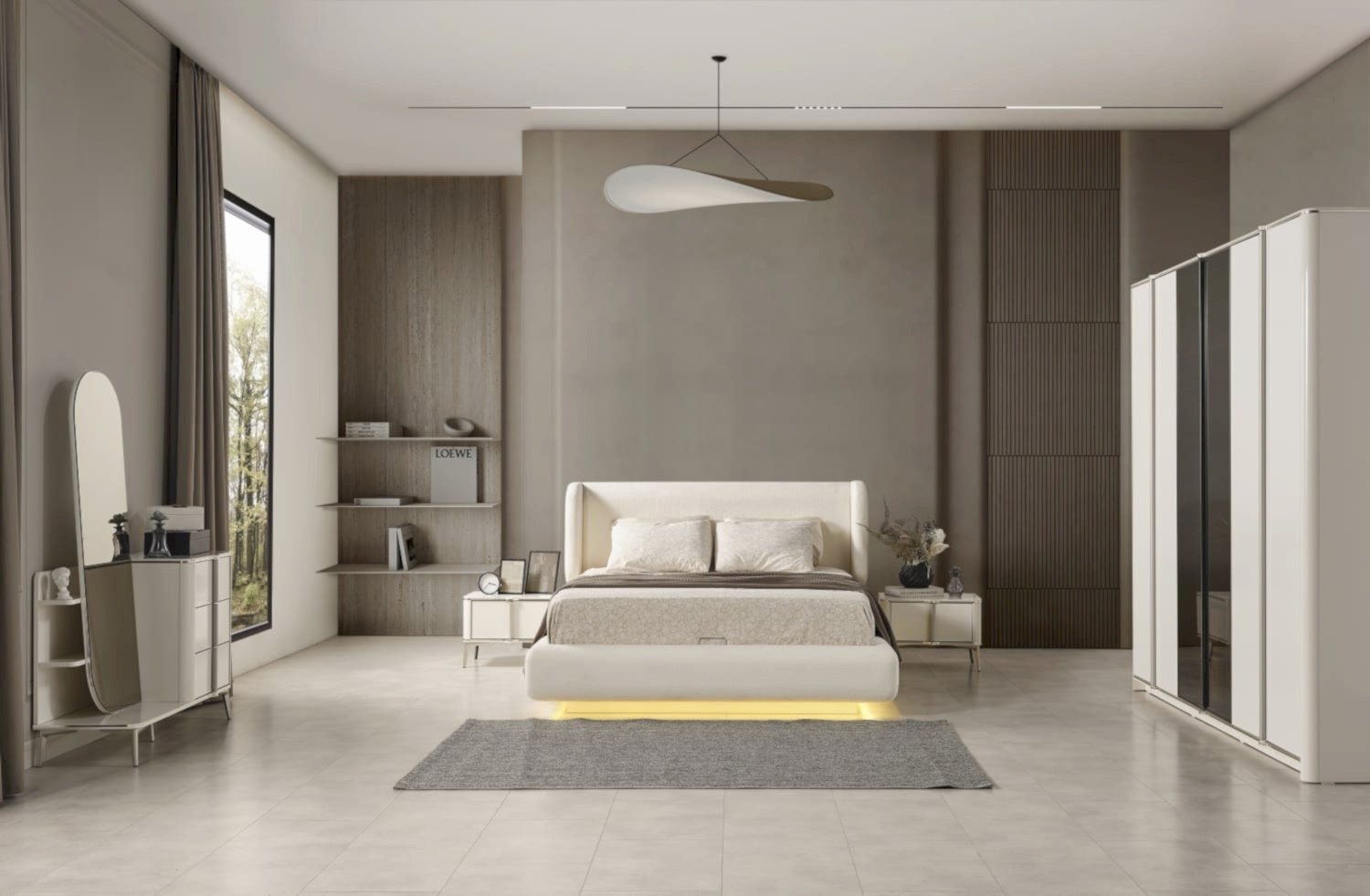 YATAK ODASI TAKIMI: Karyola, karyola başucu, 2 adet komodin, gardorop, şifonyer, şifonyer aynasından oluşmaktadır.