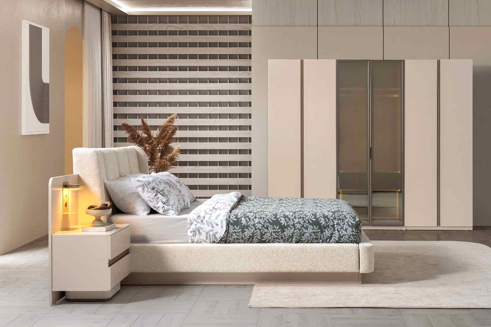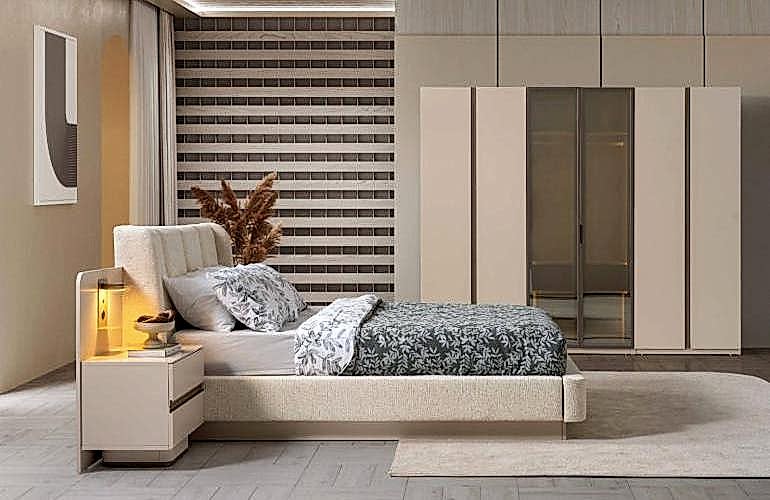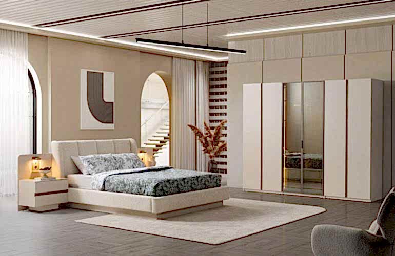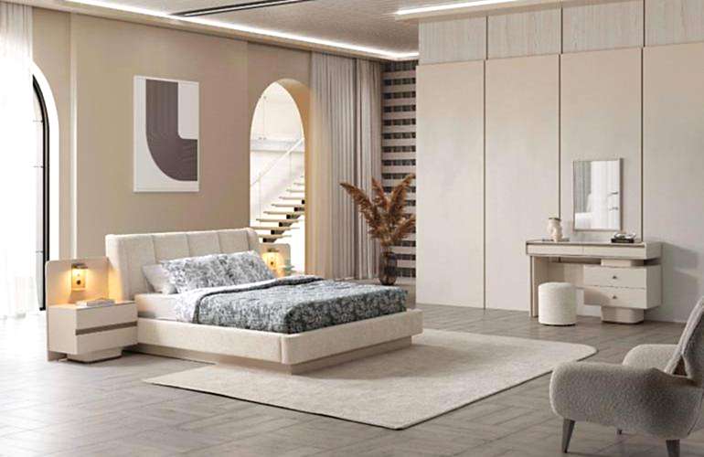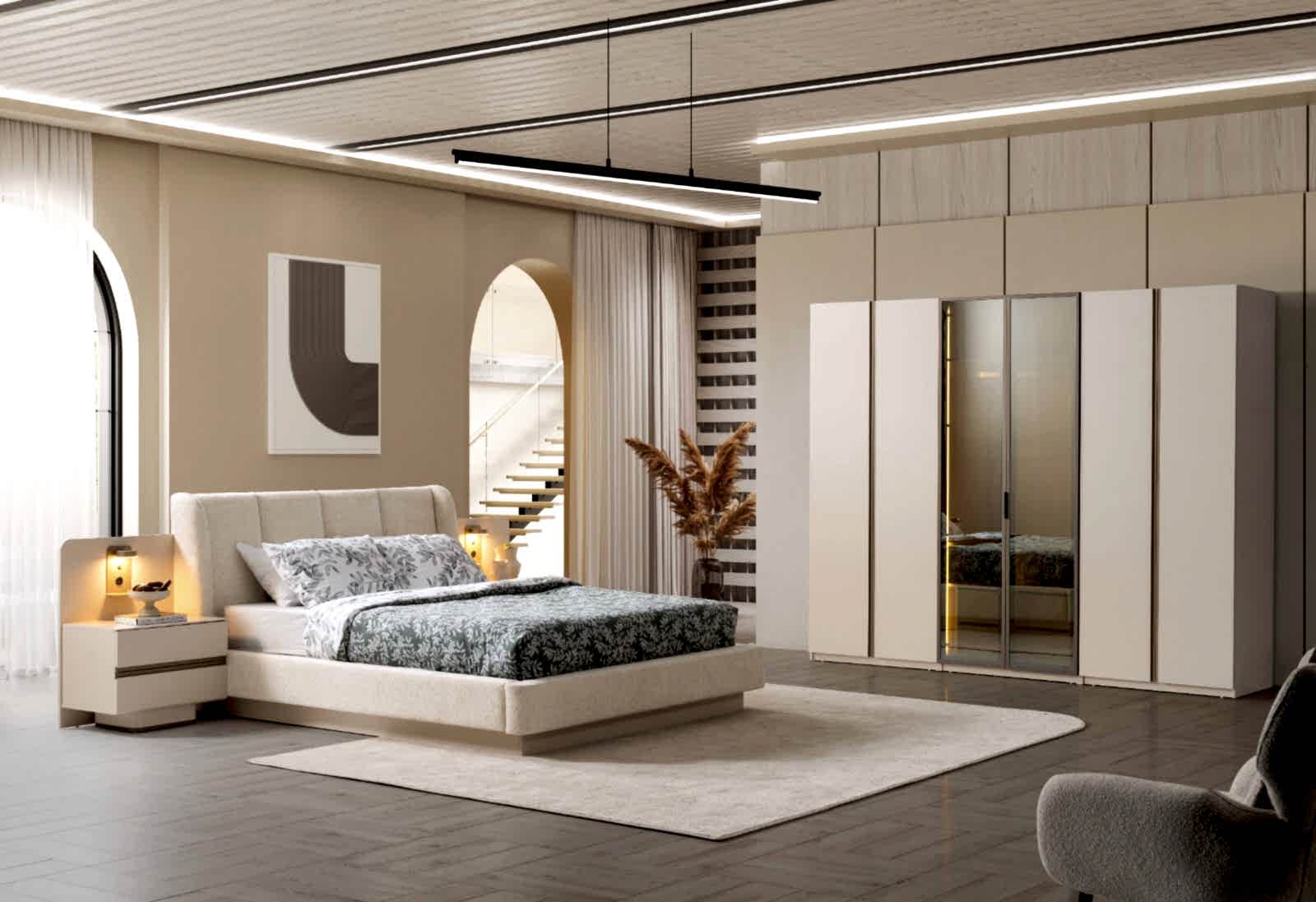 YATAK ODASI TAKIMI: Karyola, karyola başucu, 2 adet komodin, gardorop, şifonyer, şifonyer aynasından oluşmaktadır.
