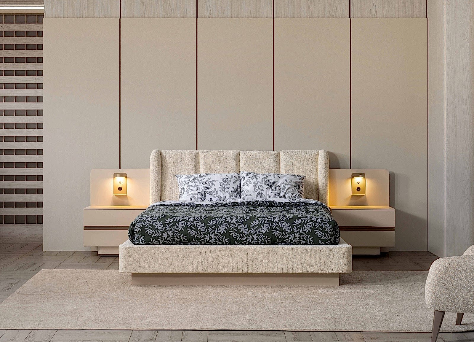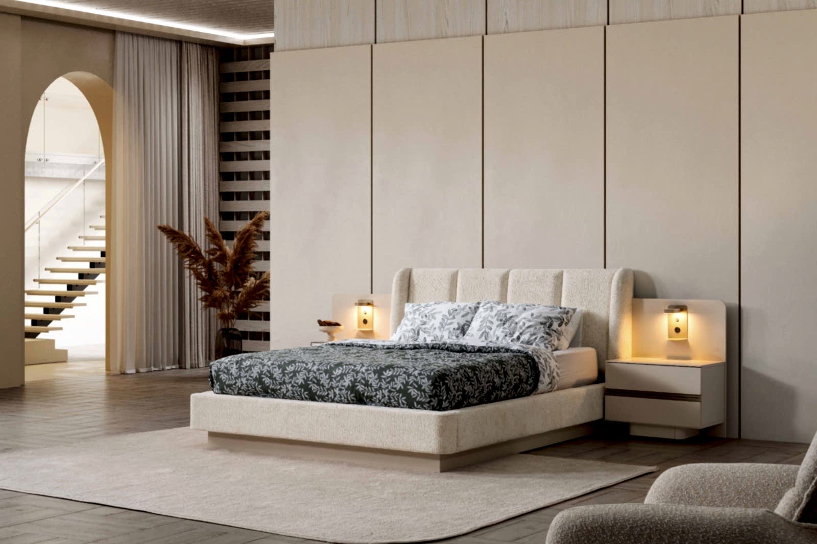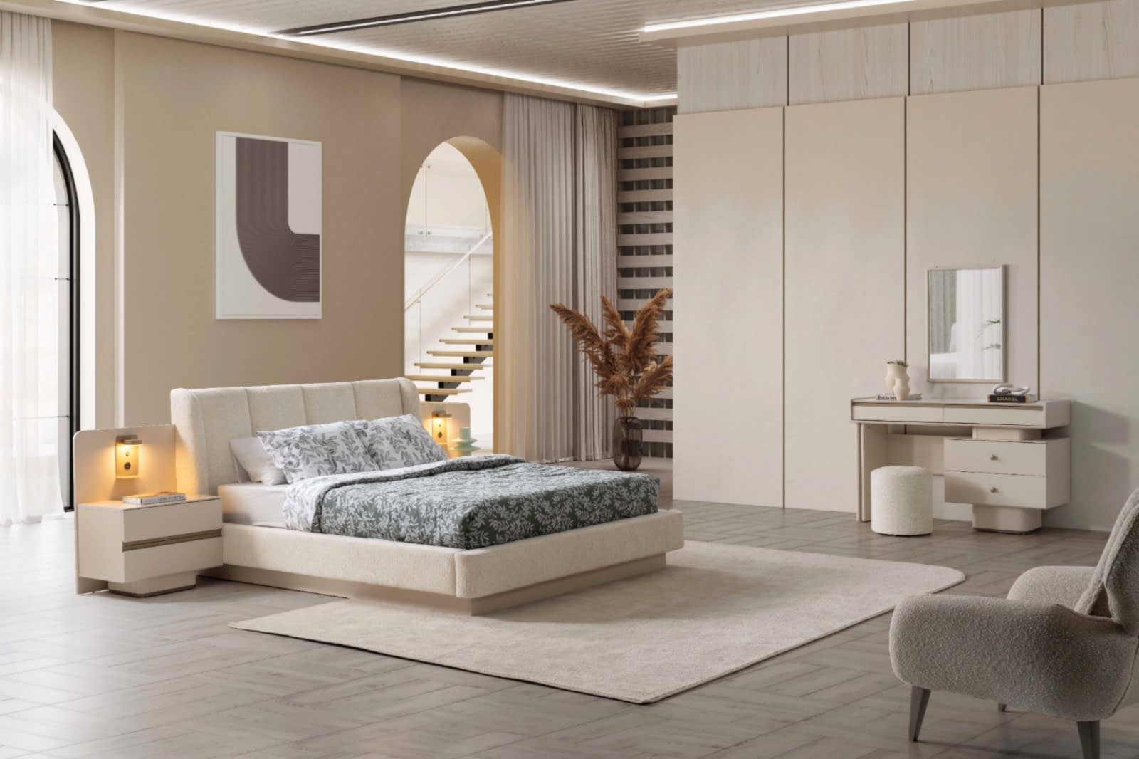 YATAK ODASI TAKIMI: Karyola, karyola başucu, 2 adet komodin, gardorop, şifonyer, şifonyer aynasından oluşmaktadır.