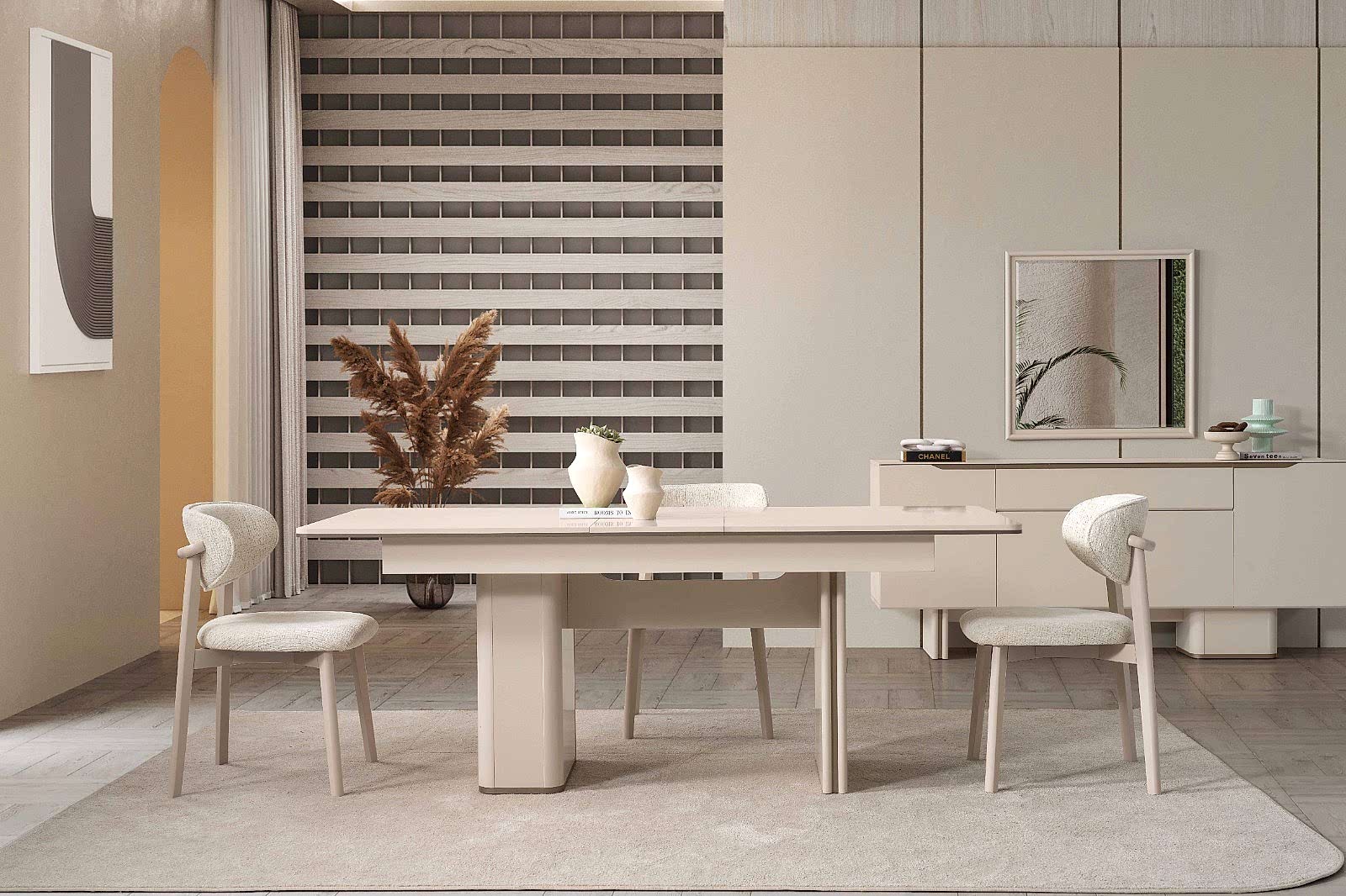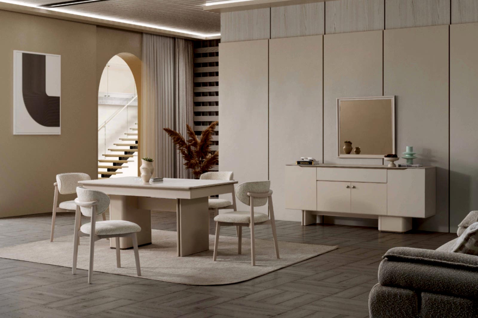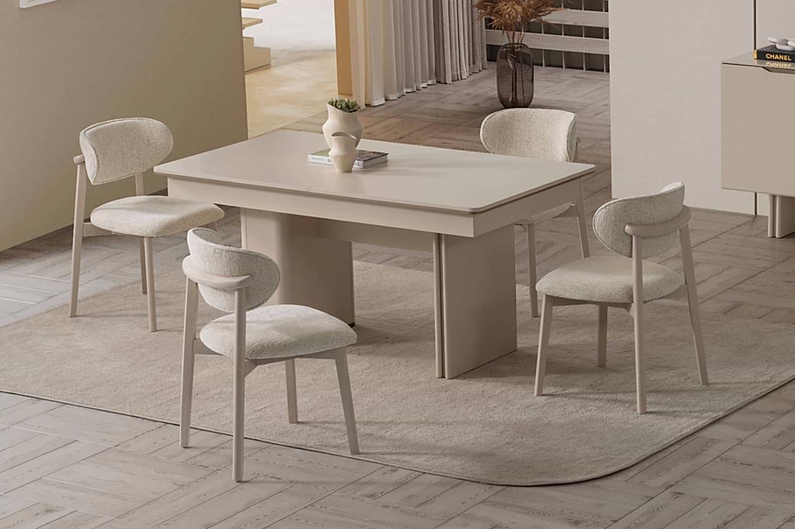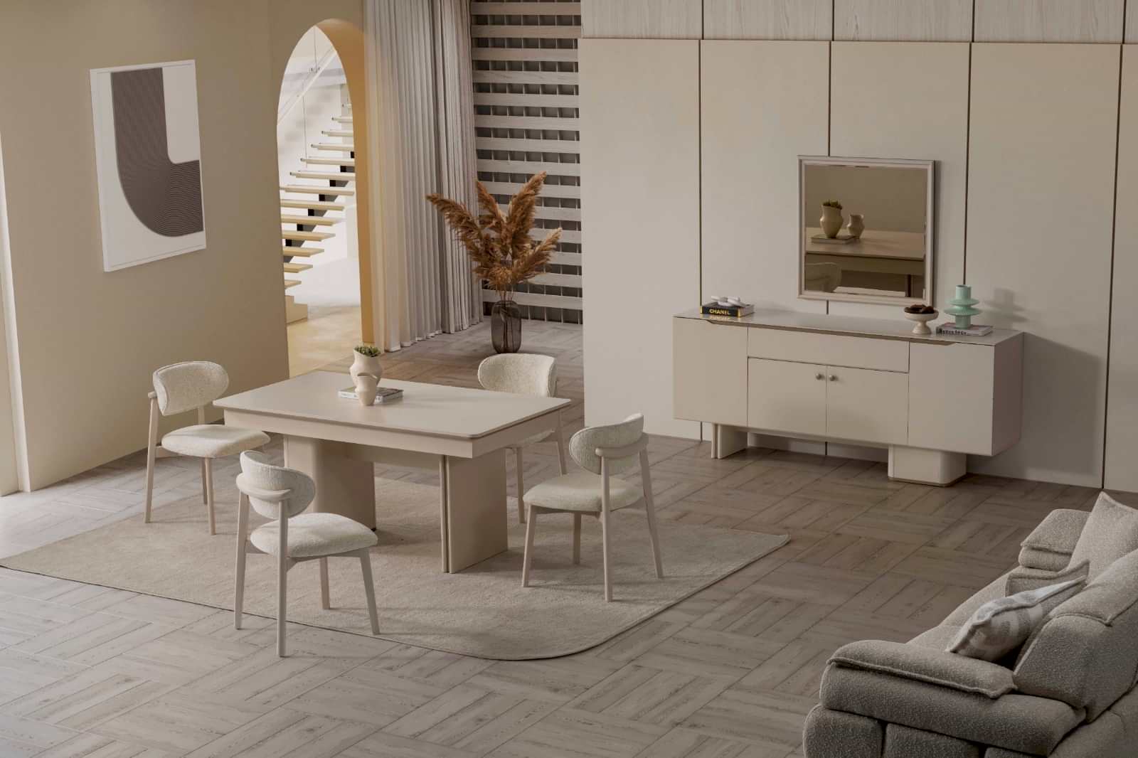 YEMEK ODASI TAKIMI: Konsol ,konsol aynası, yemek masası ve 4 adet polo sandalyelidir.