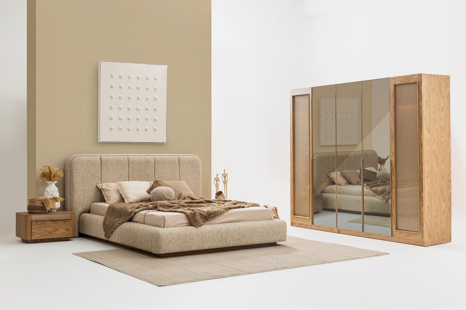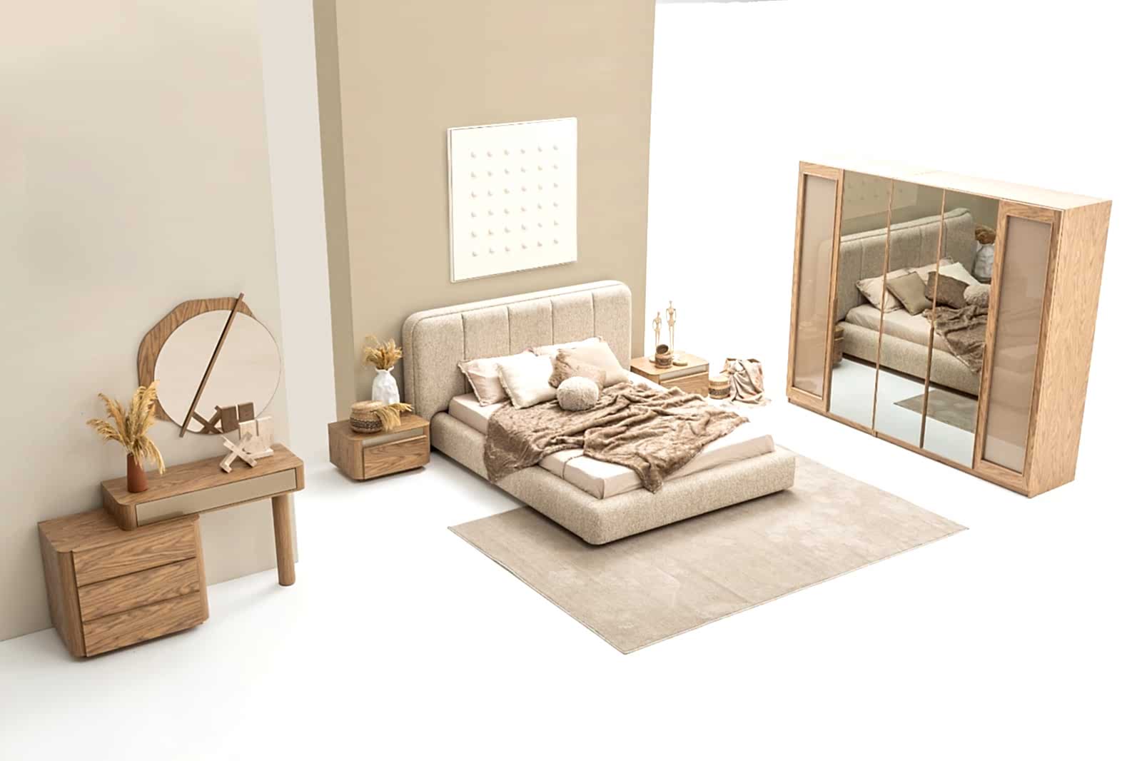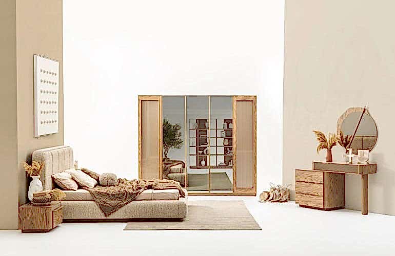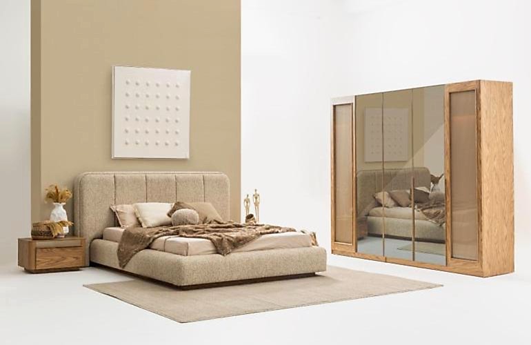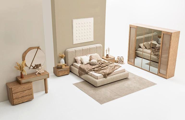 YATAK ODASI TAKIMI: Karyola, karyola başucu, 2 adet komodin, gardorop, şifonyer, şifonyer aynasından oluşmaktadır.
