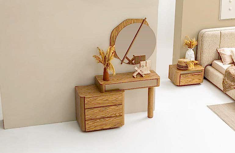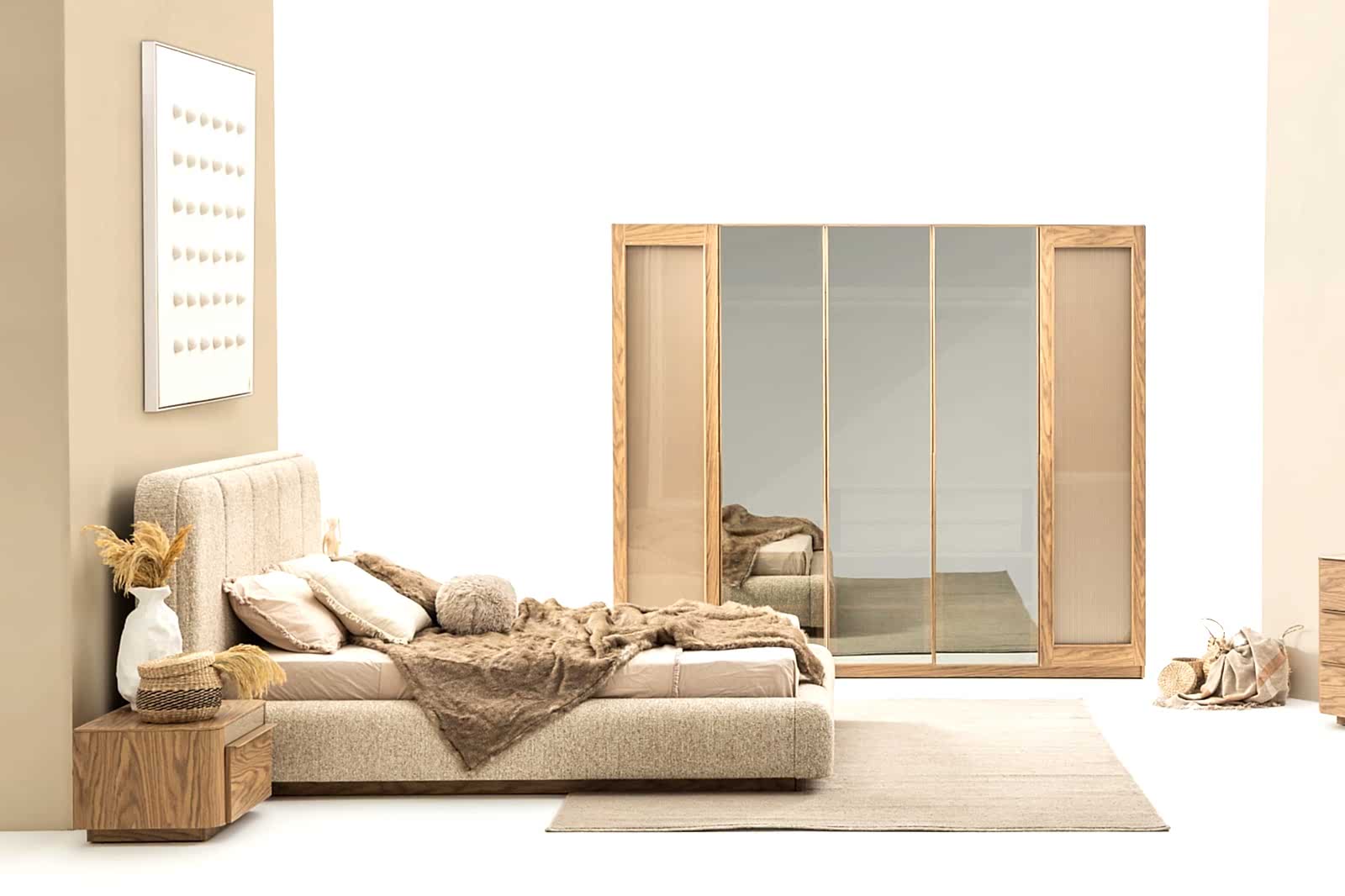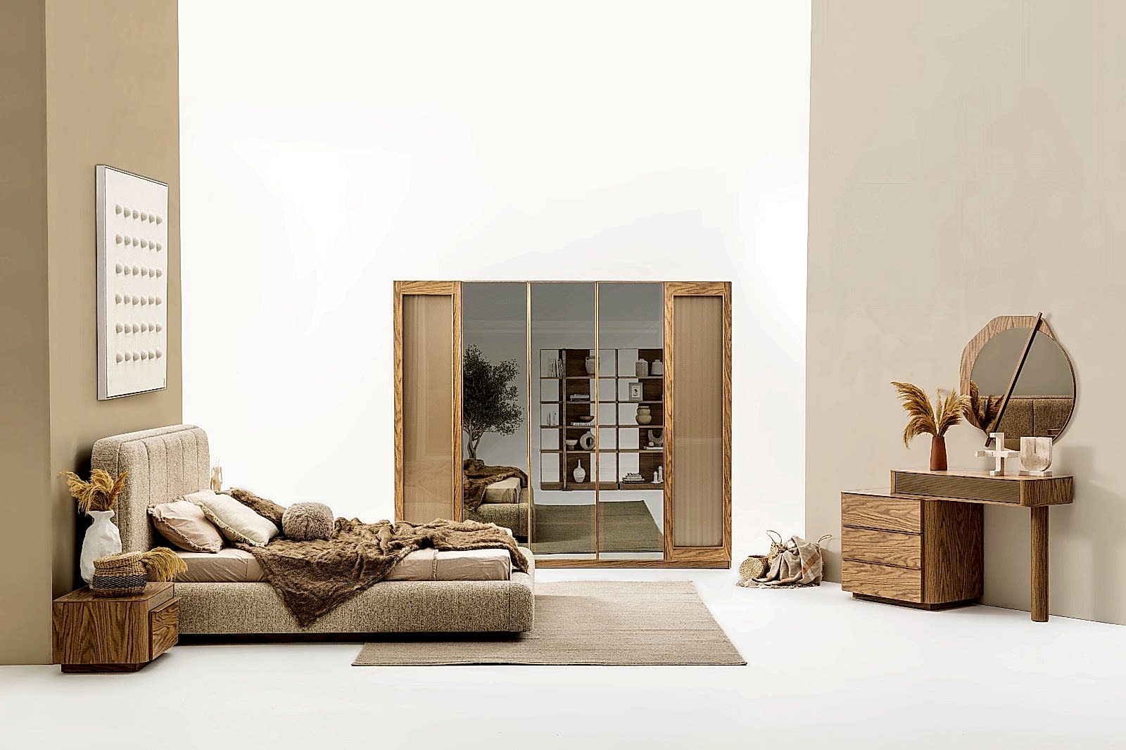YATAK ODASI TAKIMI: Karyola, karyola başucu, 2 adet komodin, gardorop, şifonyer, şifonyer aynasından oluşmaktadır.