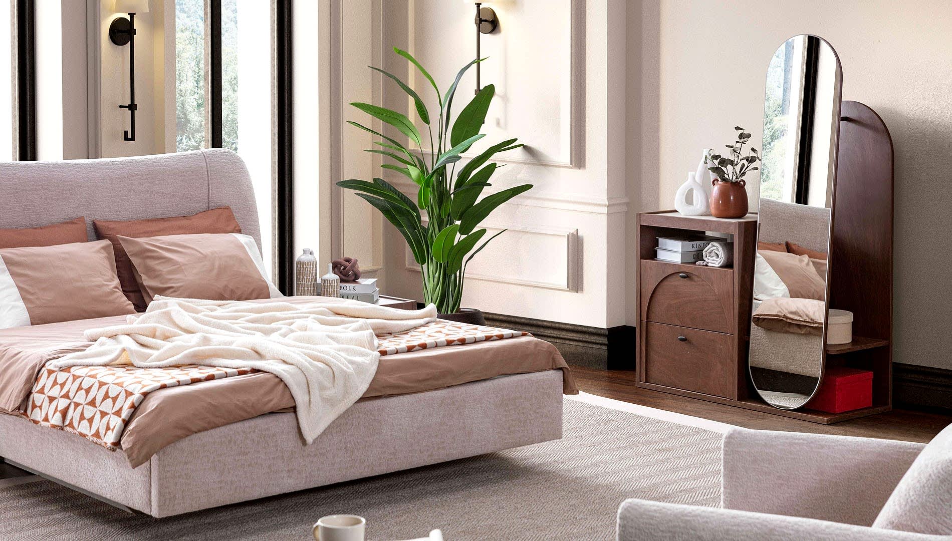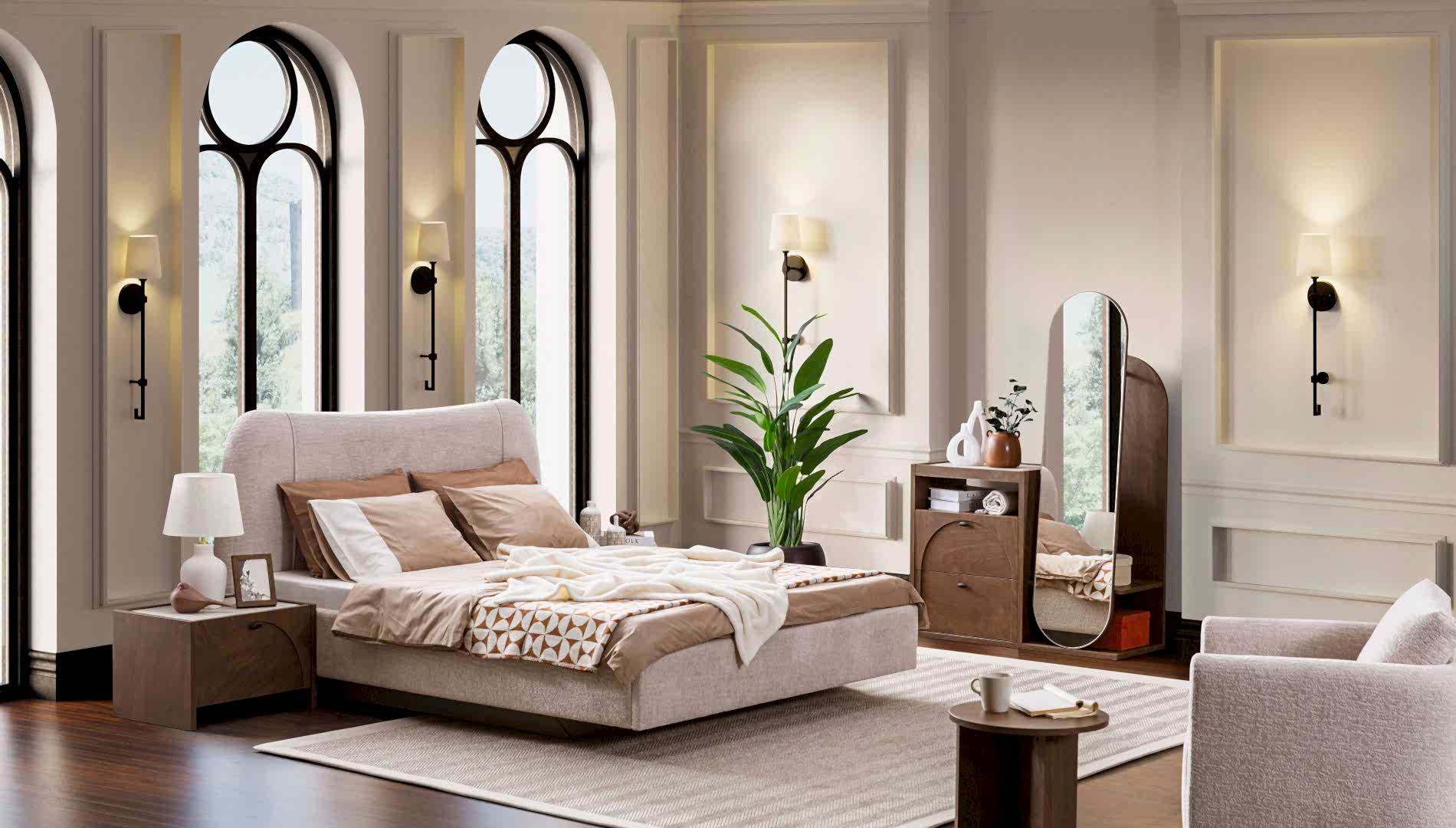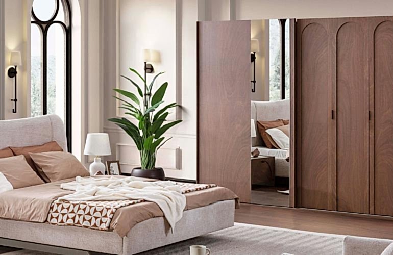 YATAK ODASI TAKIMI: Karyola, karyola başucu, 2 adet komodin, gardorop, şifonyer, şifonyer aynasından oluşmaktadır.