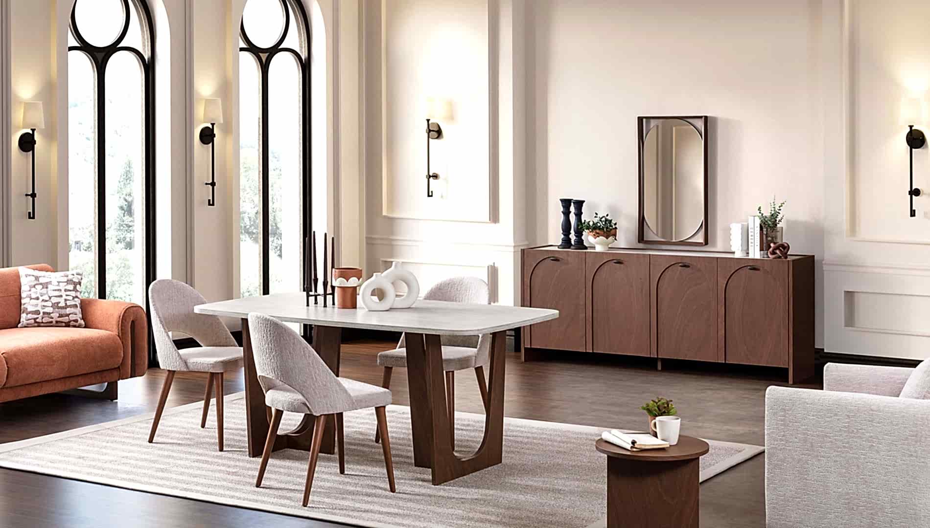 YEMEK ODASI TAKIMI: Konsol ,konsol aynası, yemek masası ve 4 adet polo sandalyelidir.