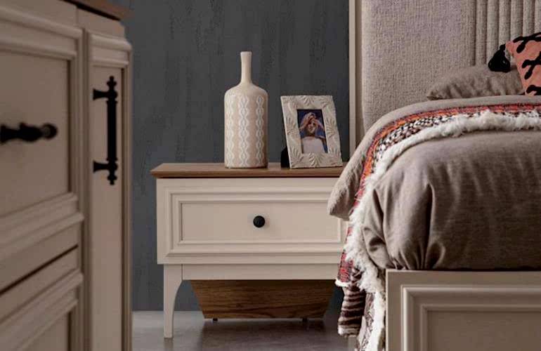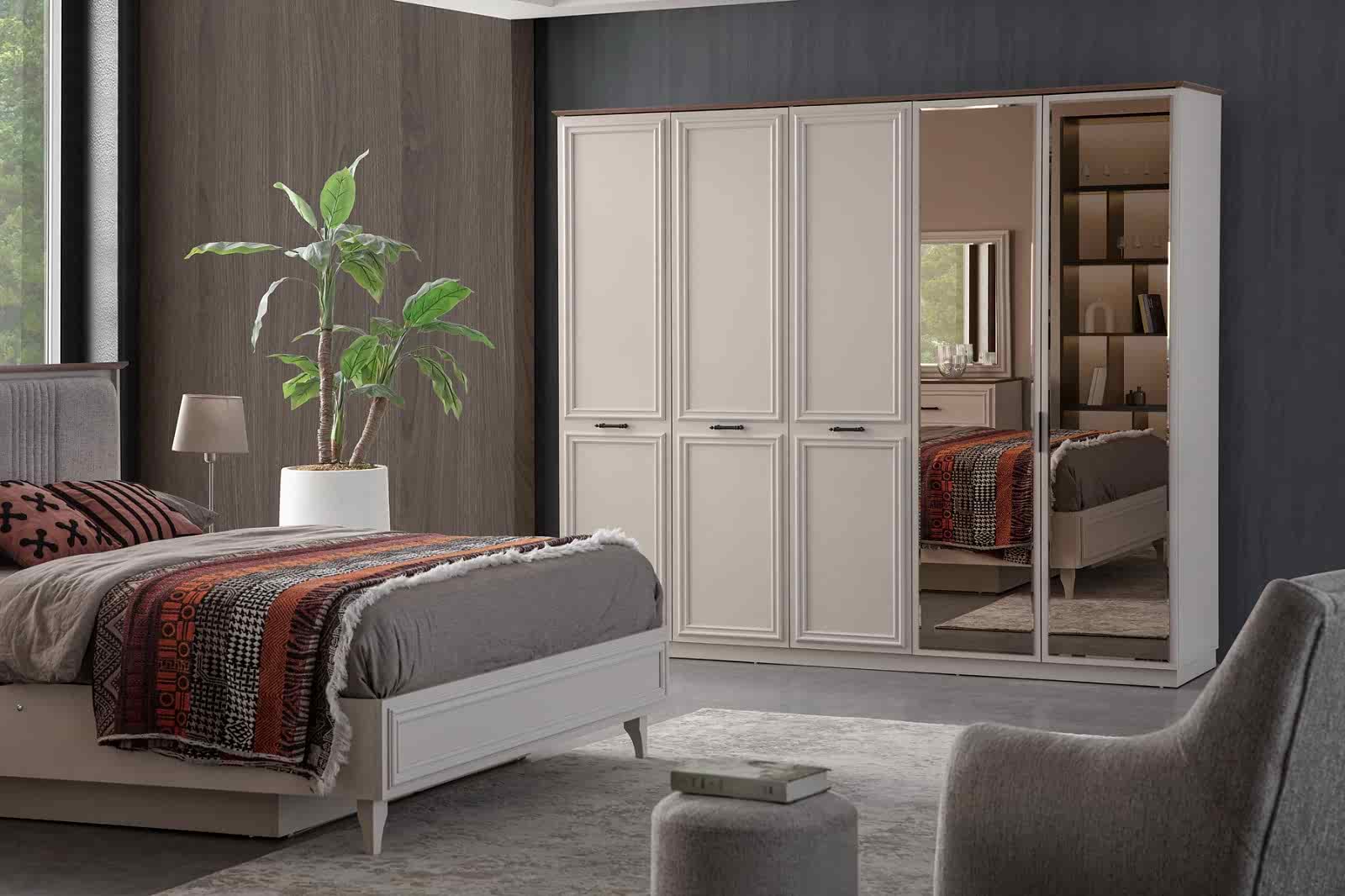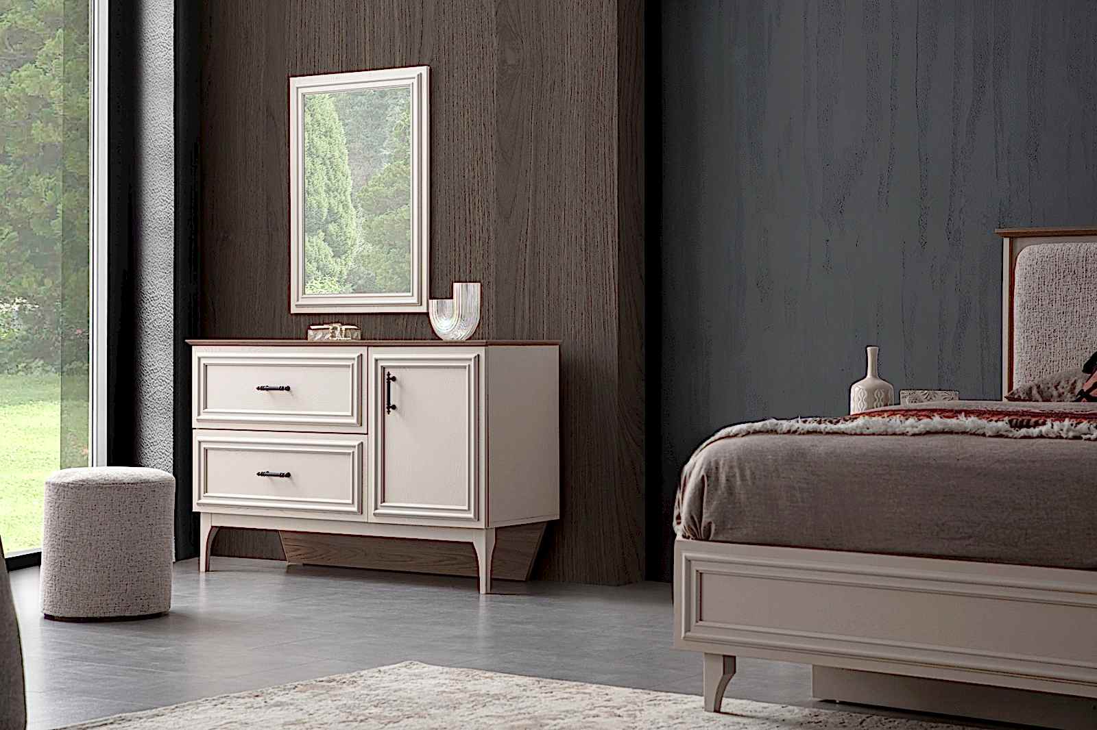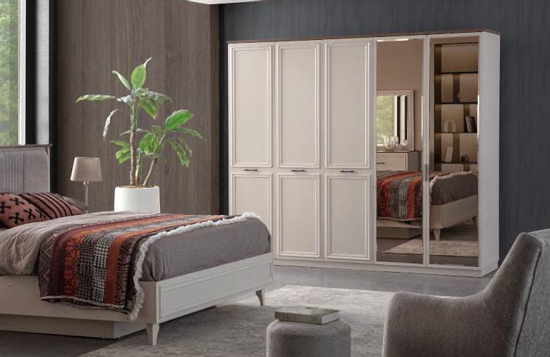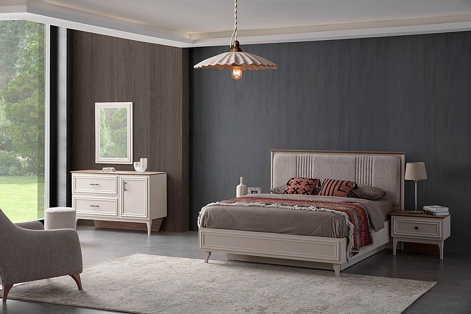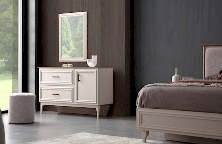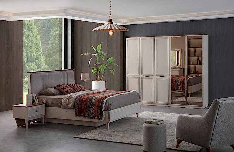 YATAK ODASI TAKIMI: Karyola, karyola başucu, 2 adet komodin, gardorop, şifonyer, şifonyer aynasından oluşmaktadır.