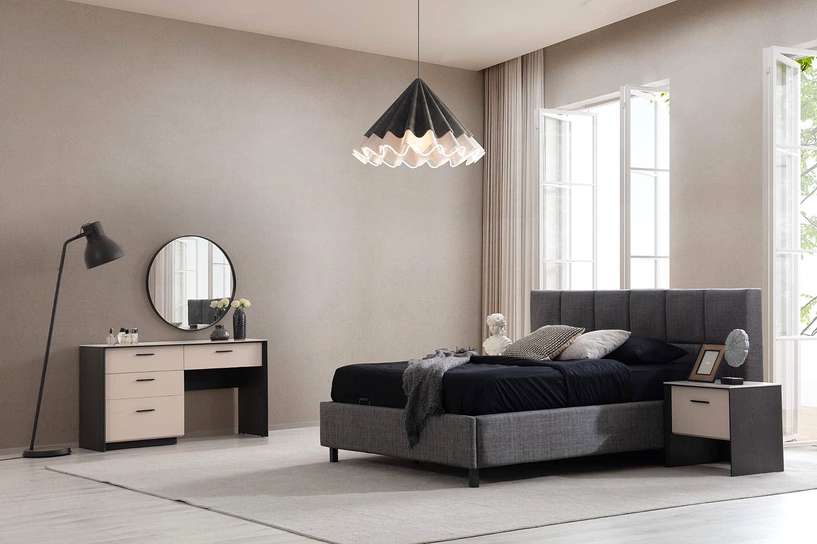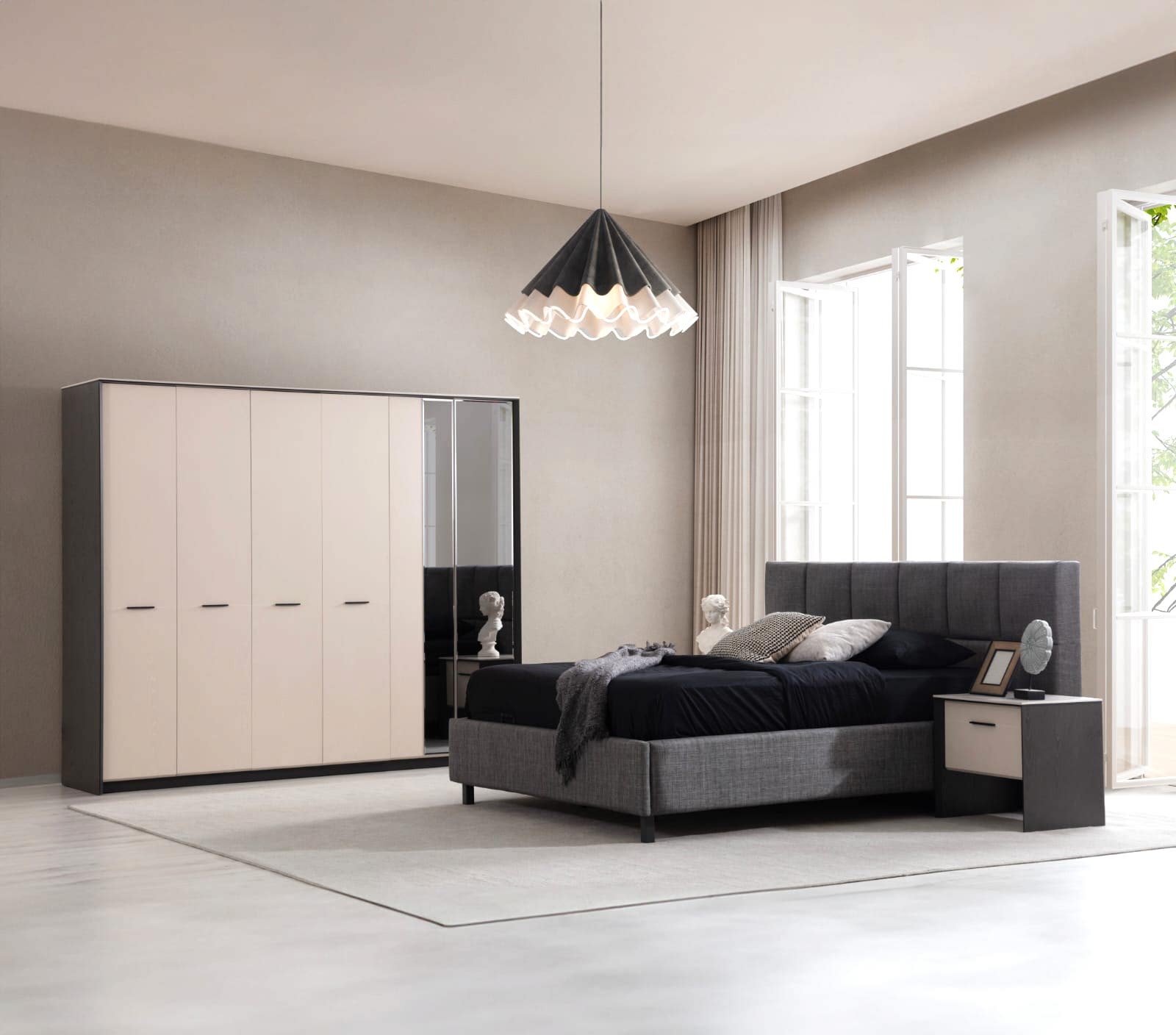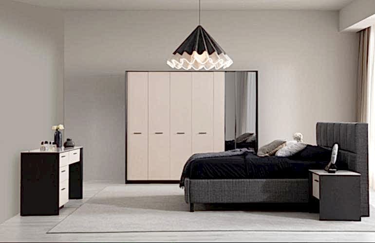 YATAK ODASI TAKIMI: Karyola, karyola başucu, 2 adet komodin, gardorop, şifonyer, şifonyer aynasından oluşmaktadır.