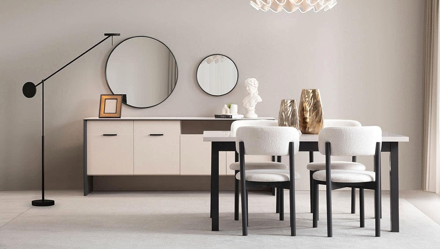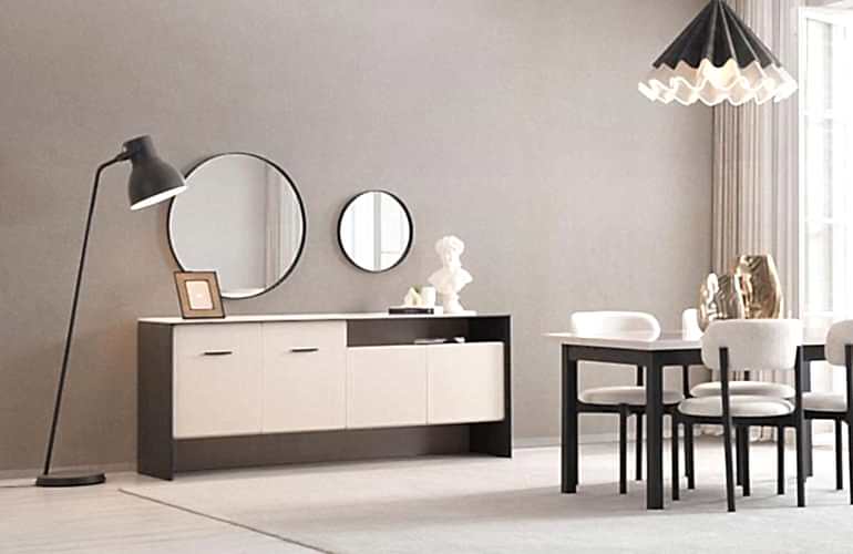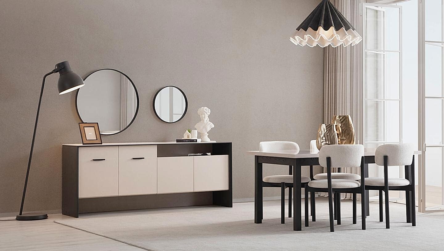 YEMEK ODASI TAKIMI: Konsol ,konsol aynası, yemek masası ve 4 adet nora sandalyelidir.