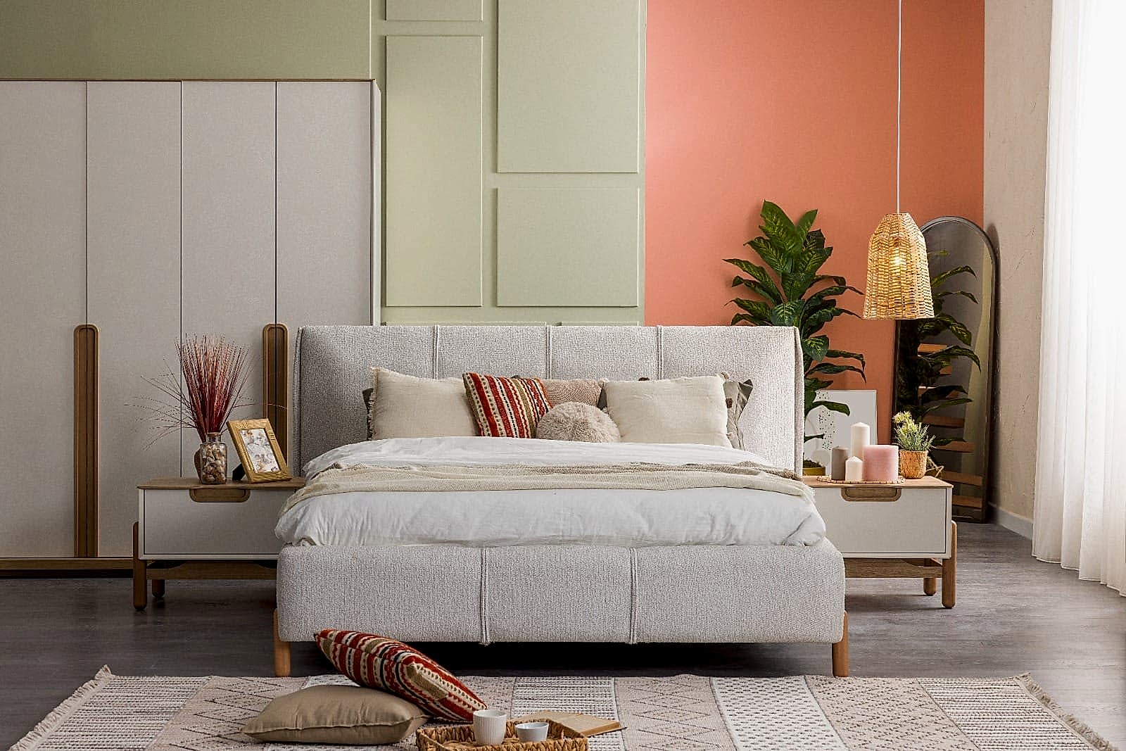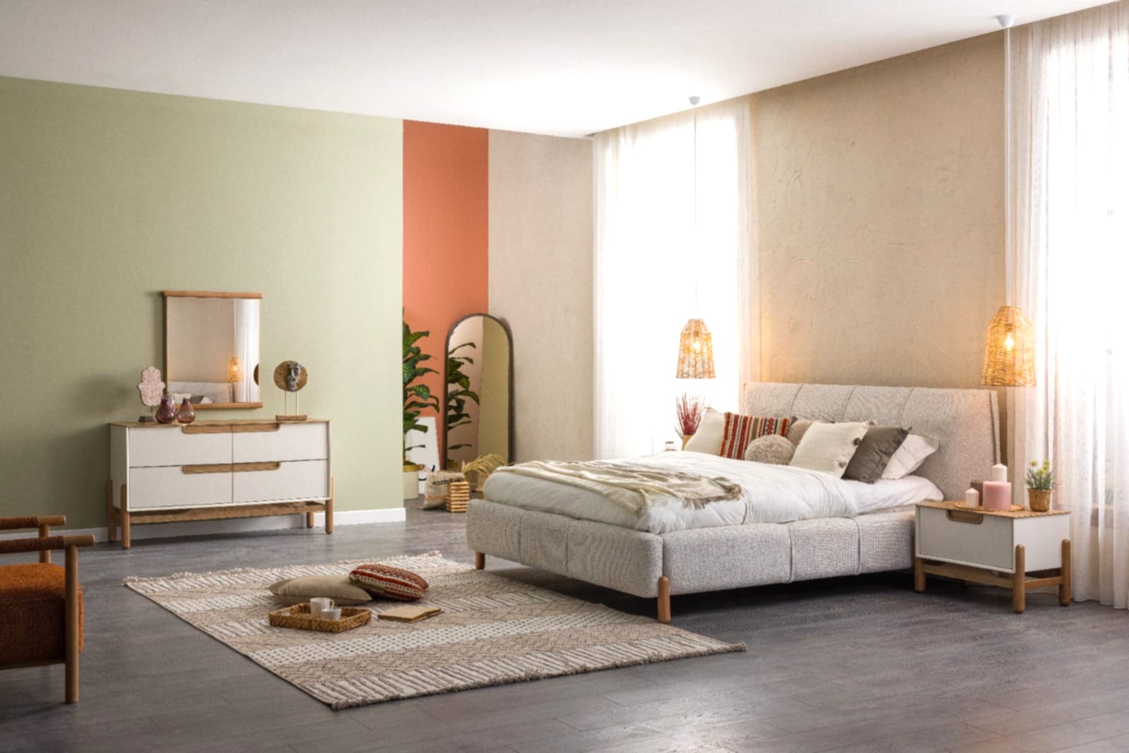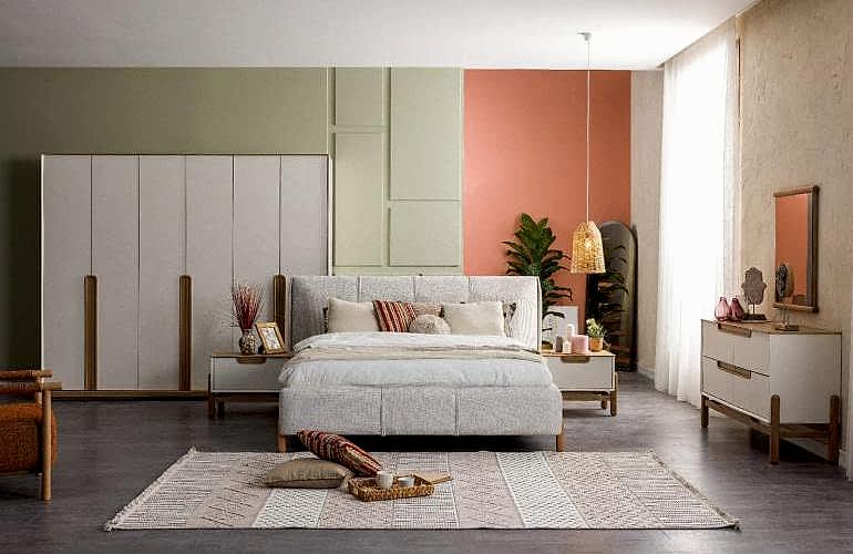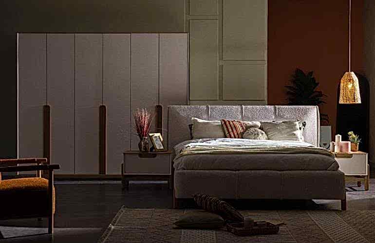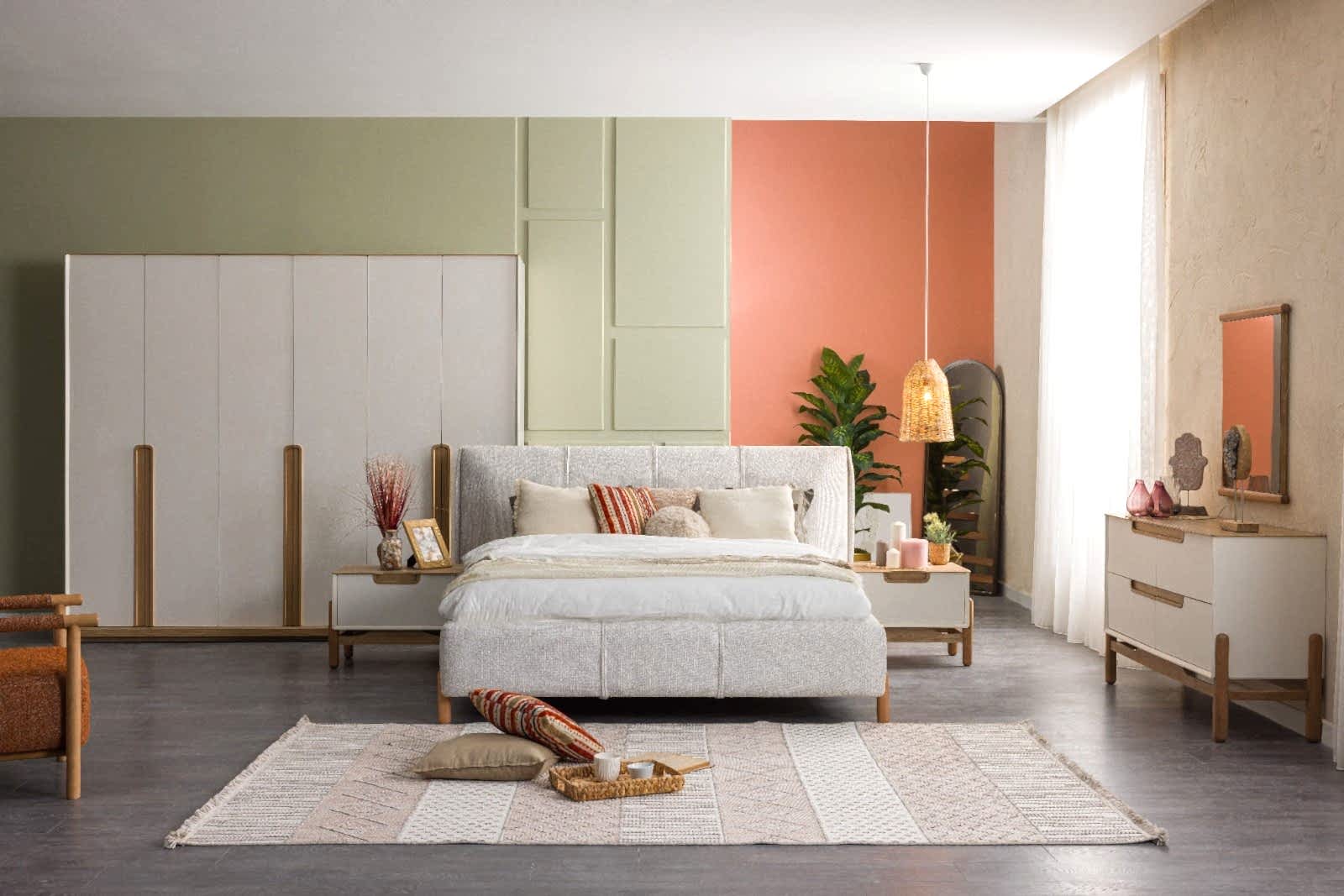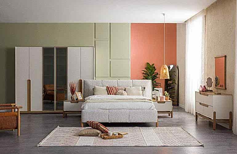 YATAK ODASI TAKIMI: Karyola, karyola başucu, 2 adet komodin, gardorop, şifonyer, şifonyer aynasından oluşmaktadır.