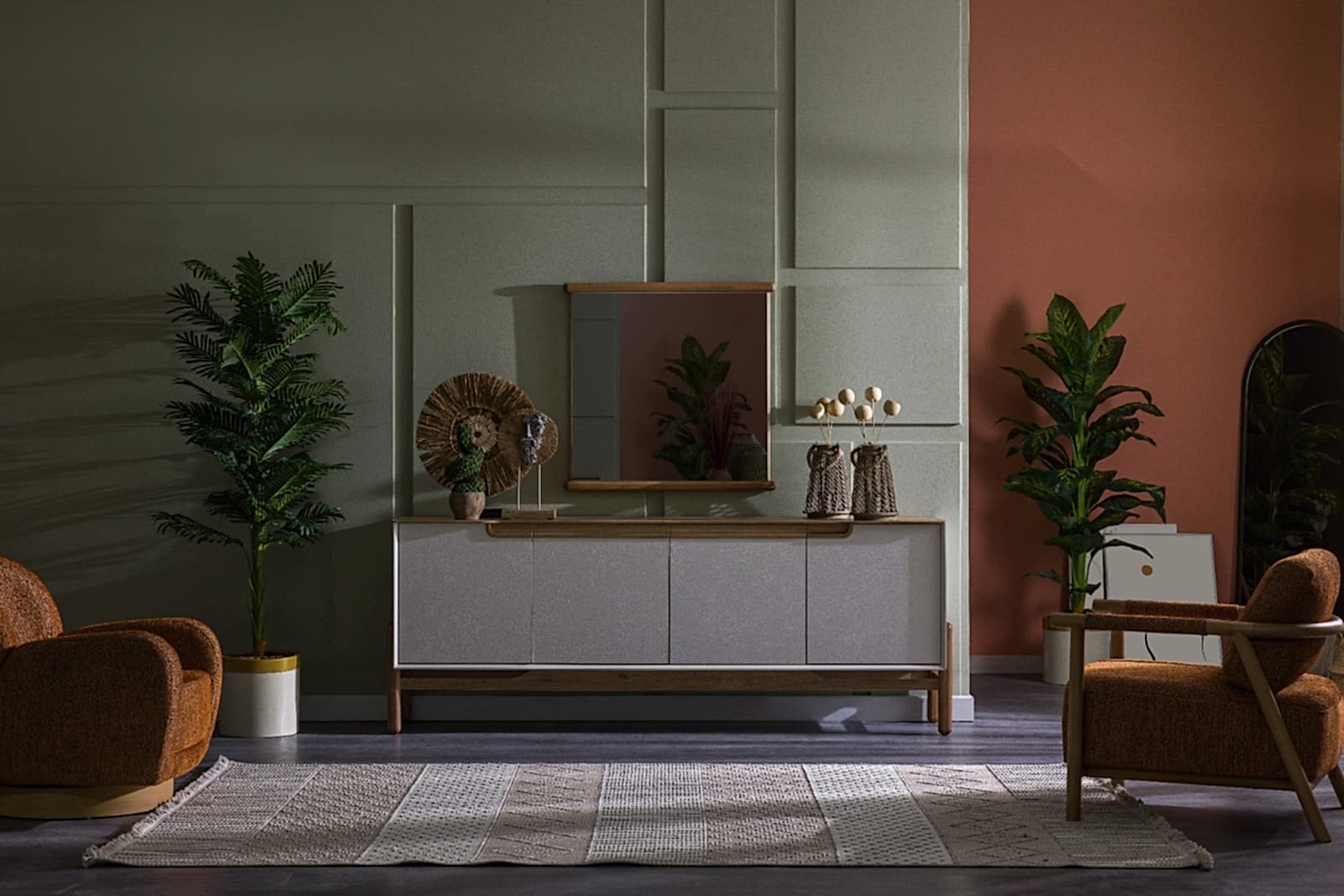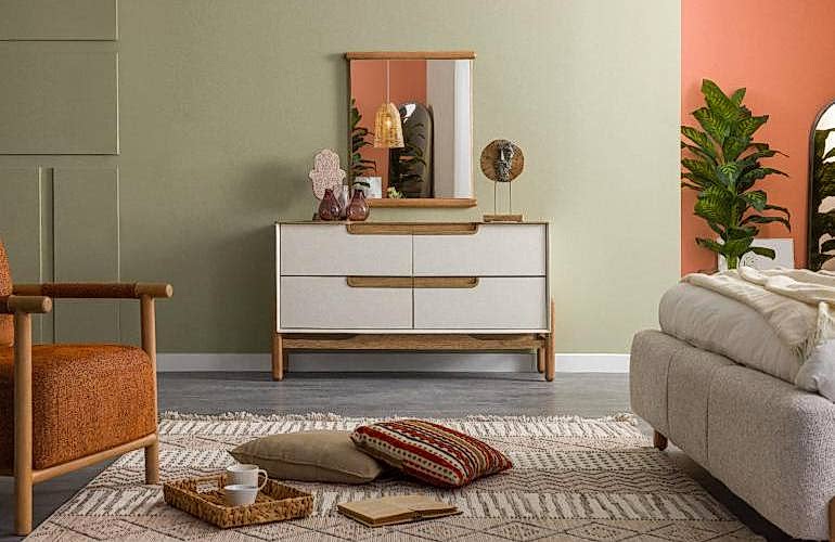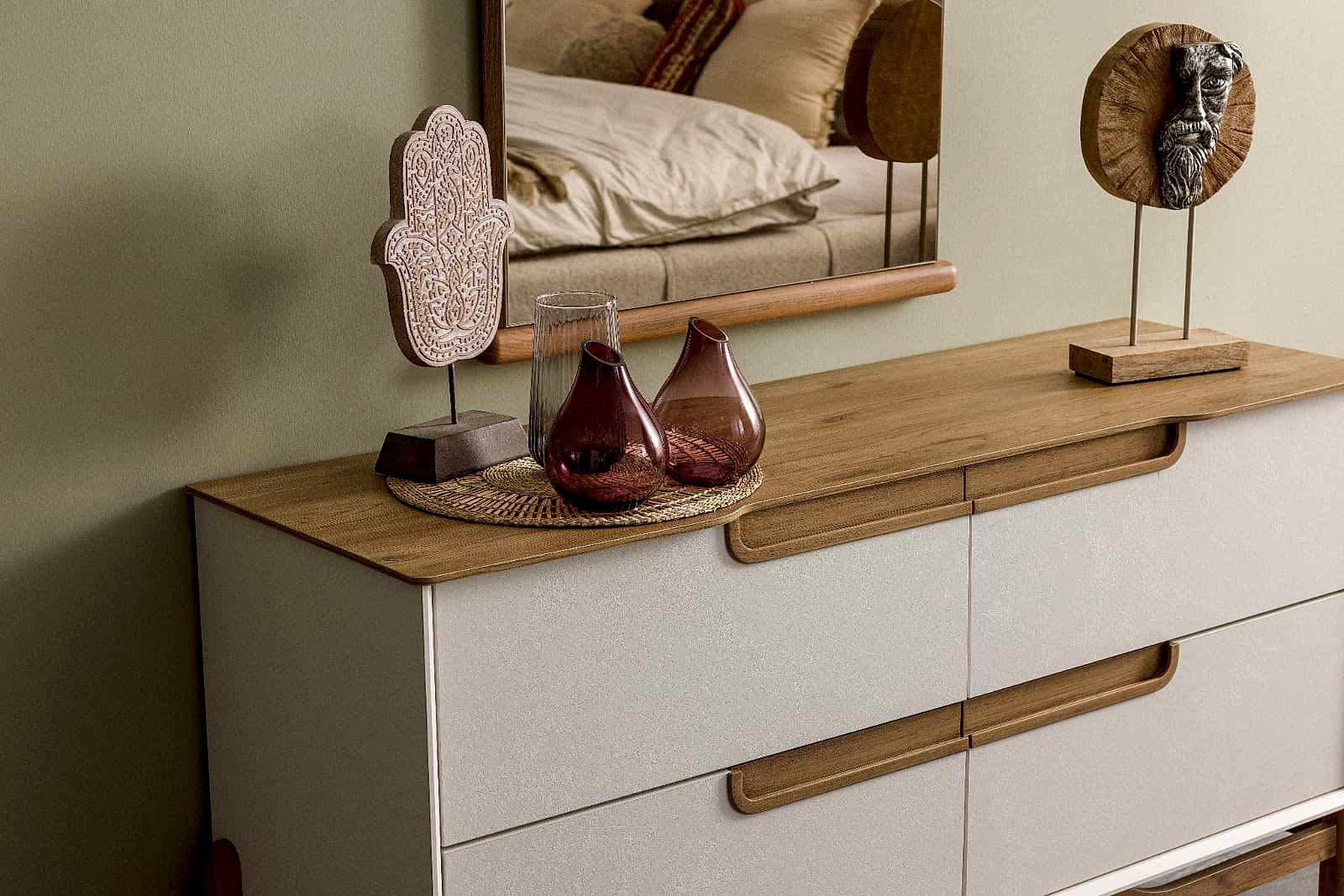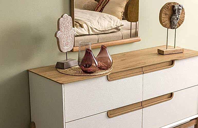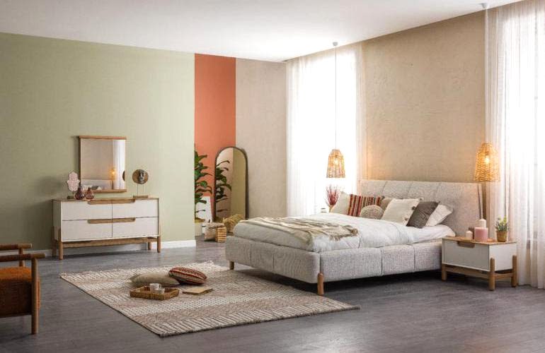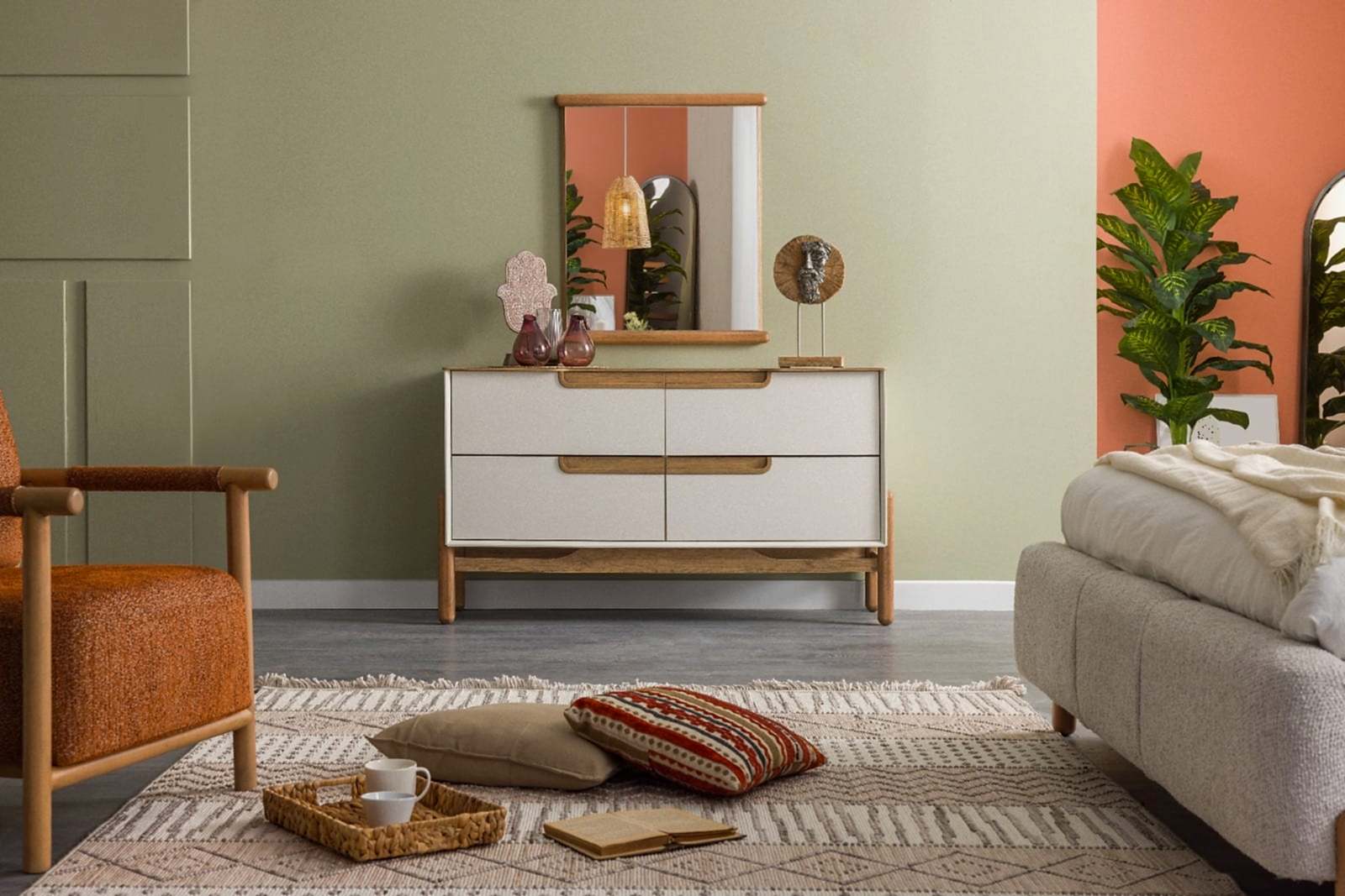 YATAK ODASI TAKIMI: Karyola, karyola başucu, 2 adet komodin, gardorop, şifonyer, şifonyer aynasından oluşmaktadır.