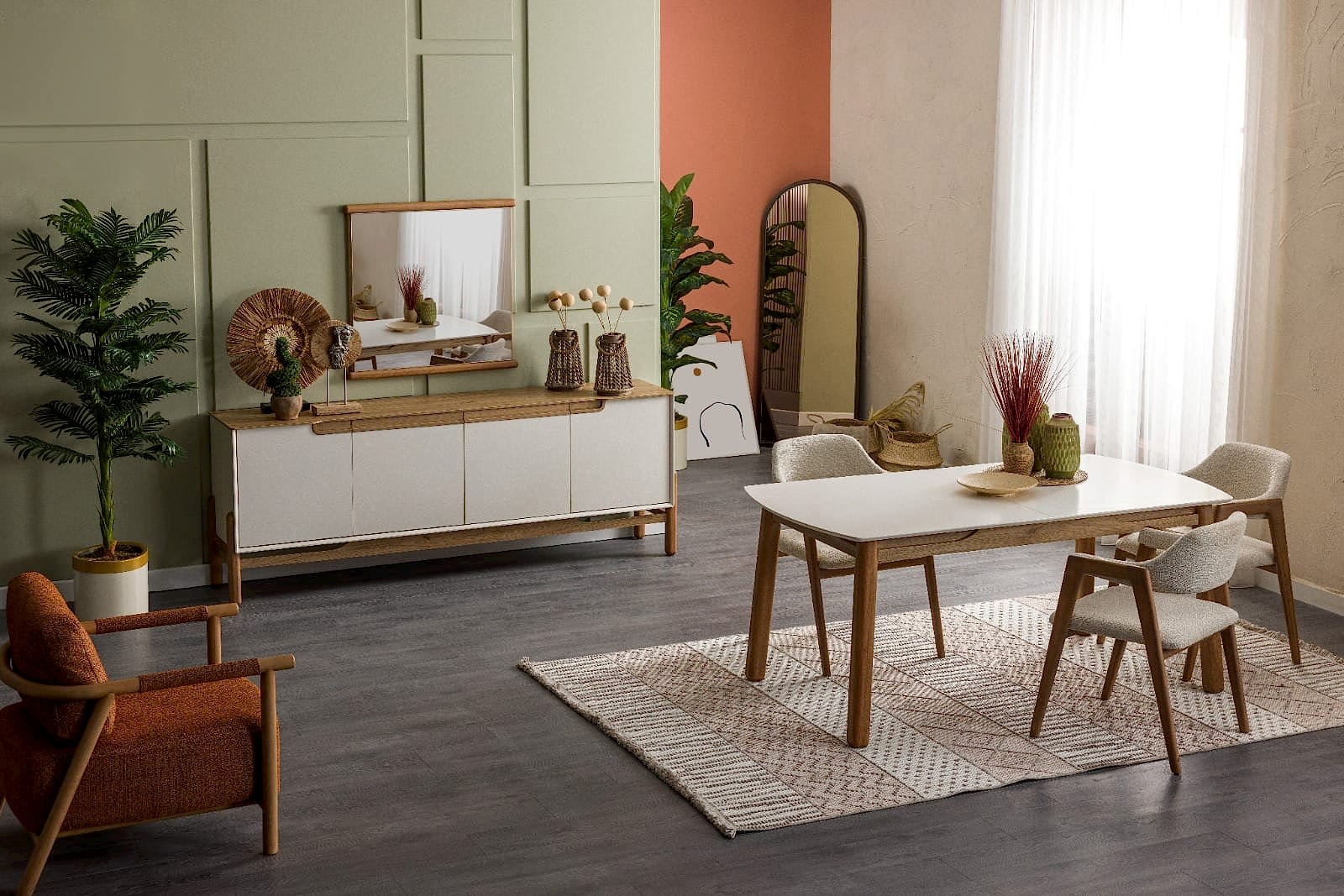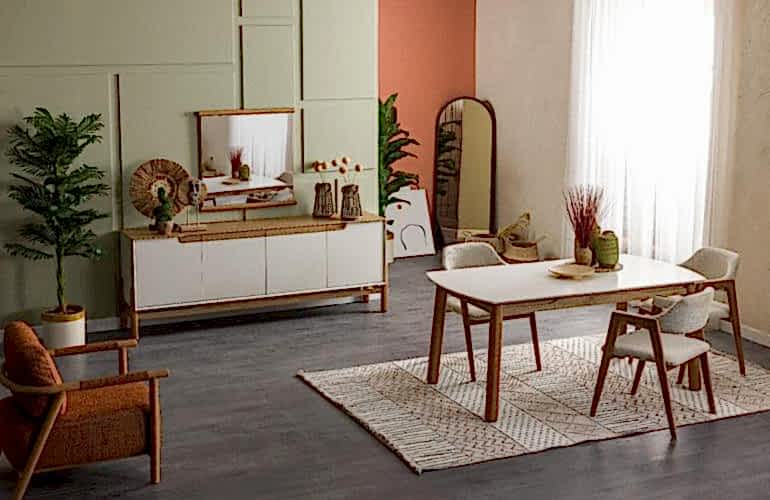 YEMEK ODASI TAKIMI: Konsol ,konsol aynası, yemek masası ve 4 adet balerıa sandalyelidir.