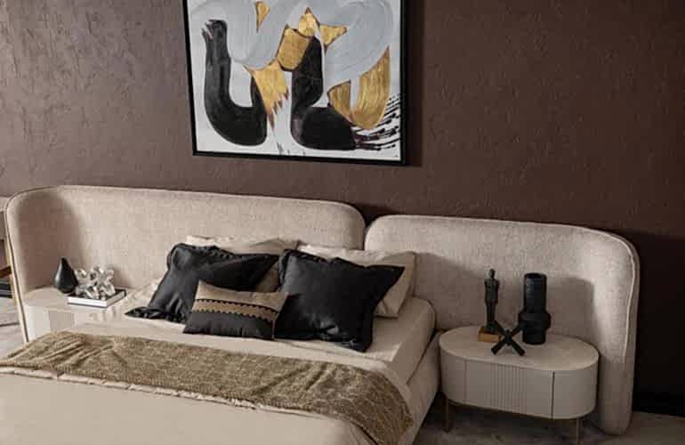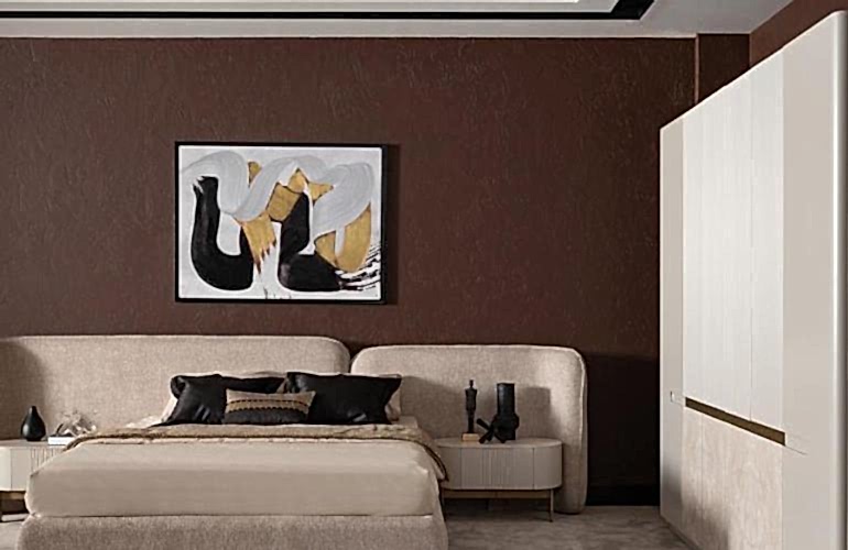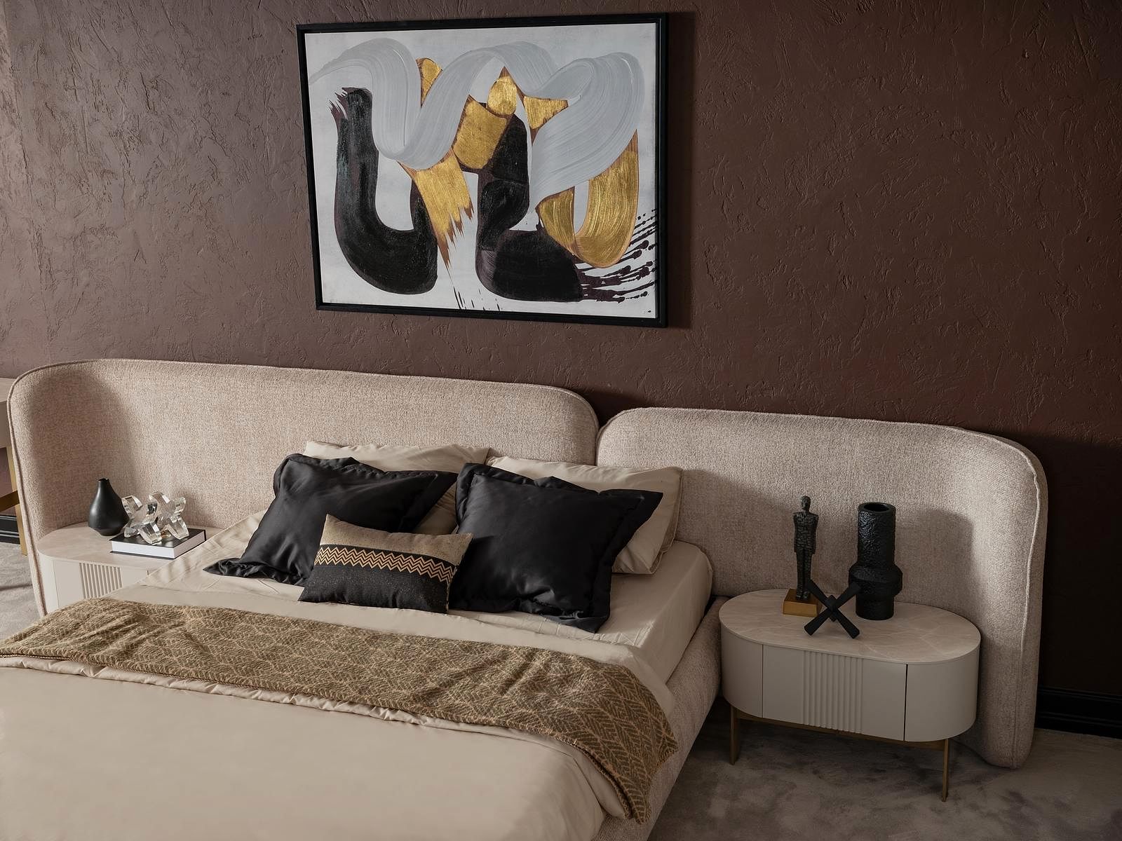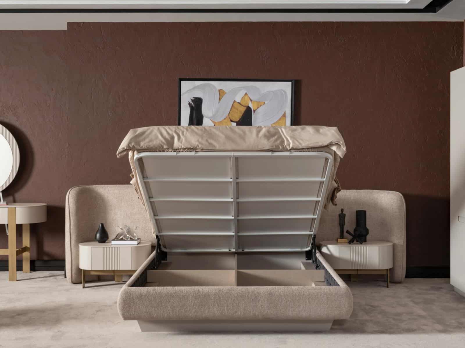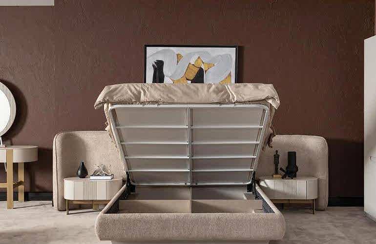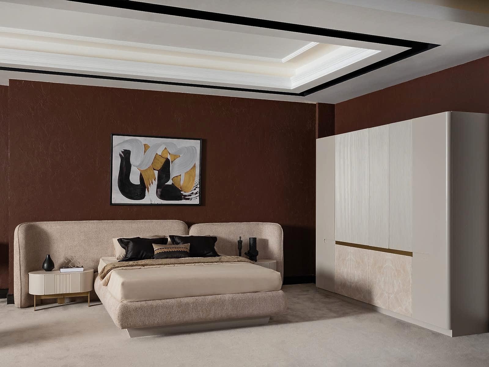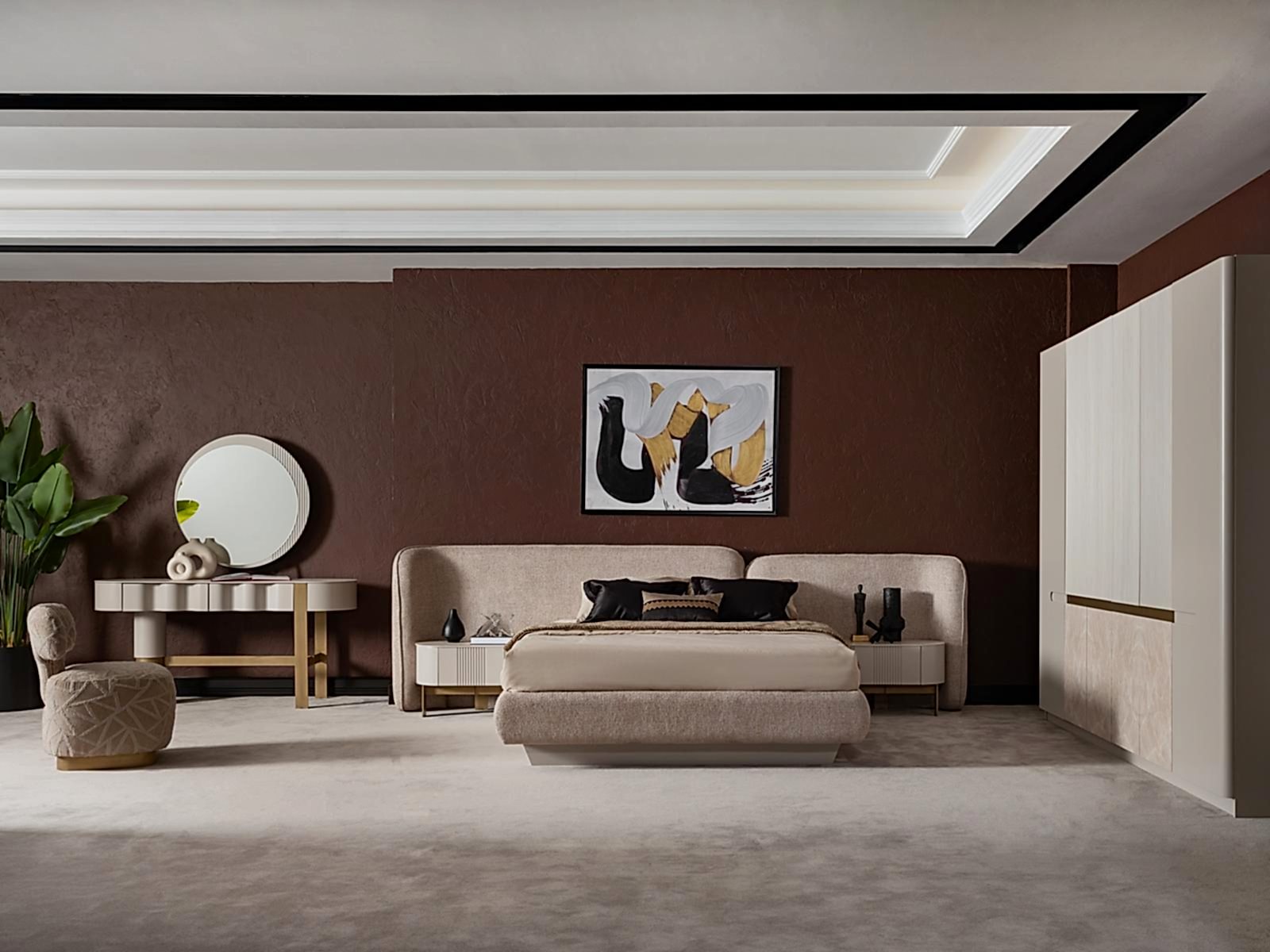YATAK ODASI TAKIMI: Karyola, karyola başucu, 2 adet komodin, gardorop, şifonyer, şifonyer aynasından oluşmaktadır.