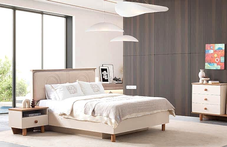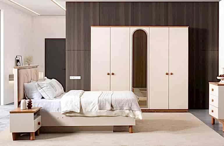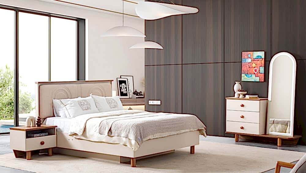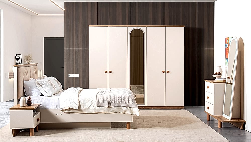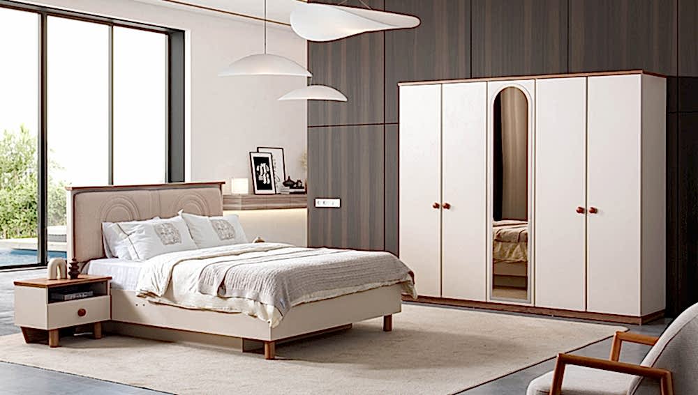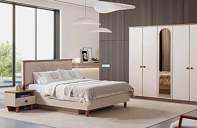 YATAK ODASI TAKIMI: Karyola, karyola başucu, 2 adet komodin, gardorop, şifonyer, şifonyer aynasından oluşmaktadır.