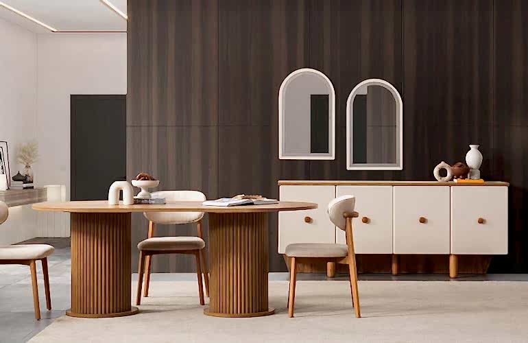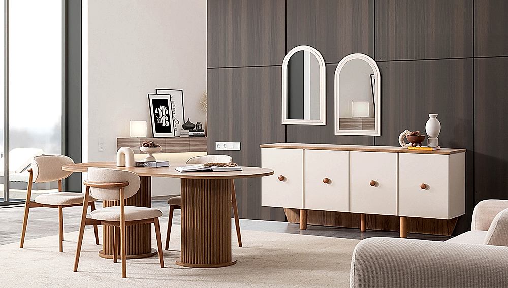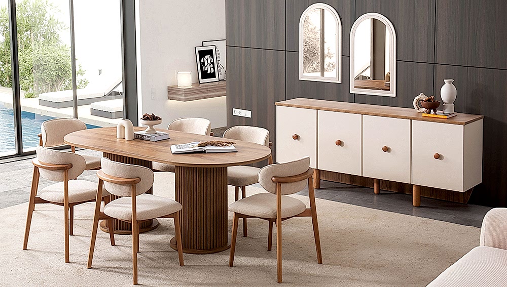 YEMEK ODASI TAKIMI: Konsol ,konsol aynası, yemek masası ve 4 adet polo sandalyelidir.