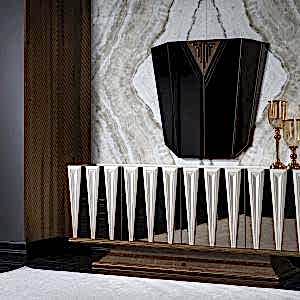 YATAK ODASI TAKIMI: Karyola, karyola başucu, 2 adet komodin, gardorop, şifonyer, şifonyer aynasından oluşmaktadır.