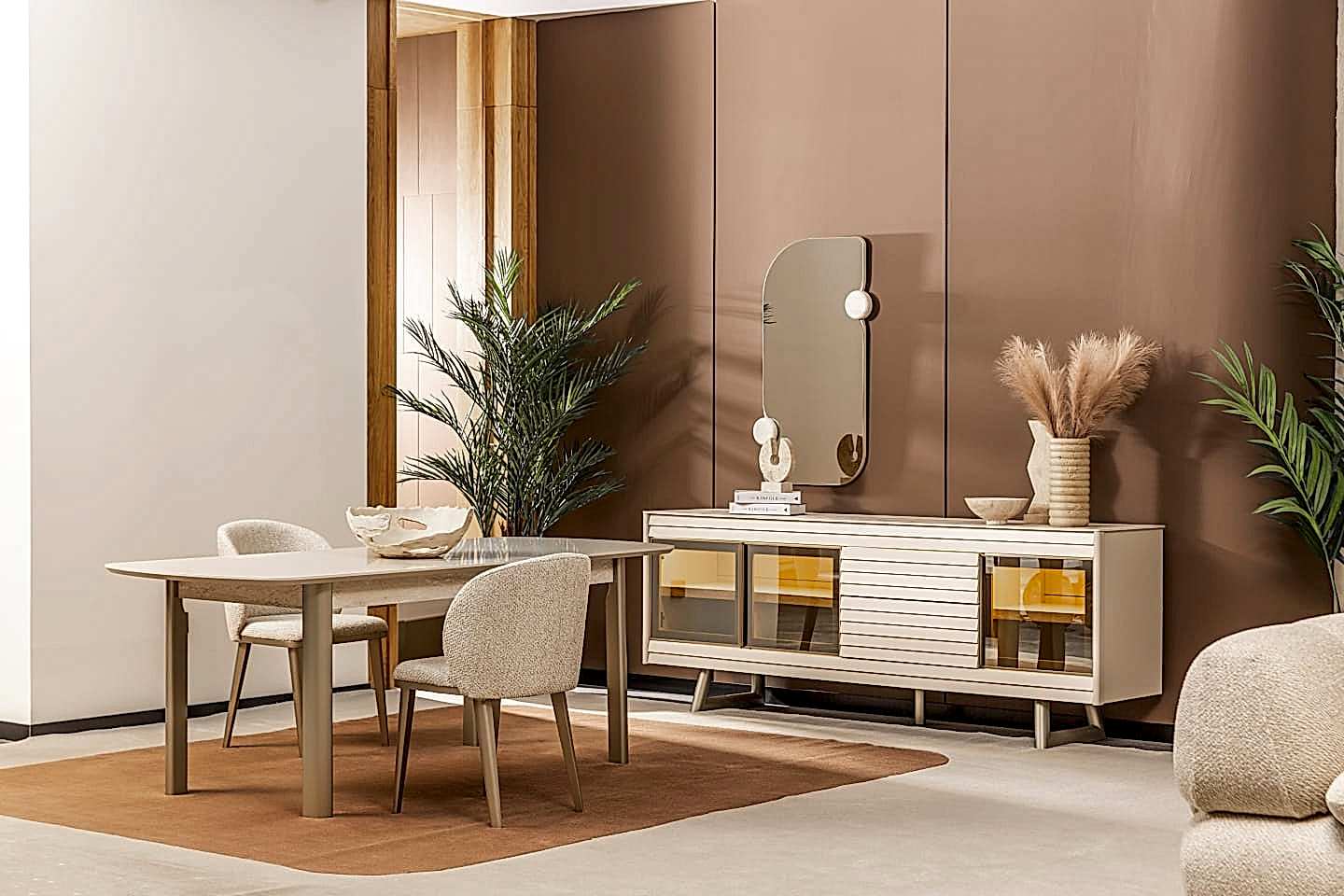 YEMEK ODASI TAKIMI: Konsol ,konsol aynası, yemek masası ve 4 adet isabelle sandalyelidir.