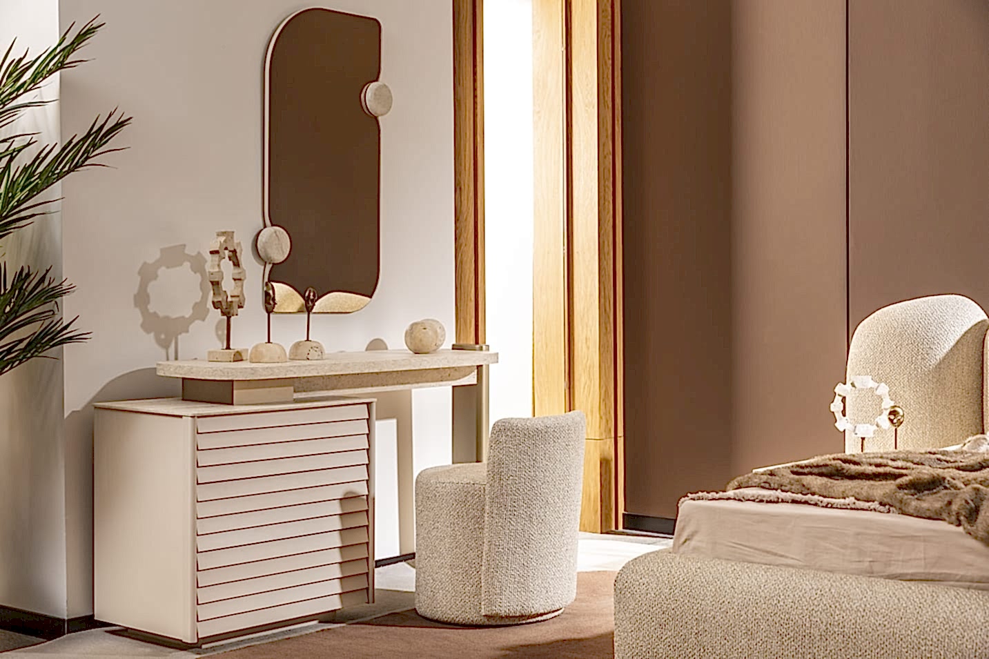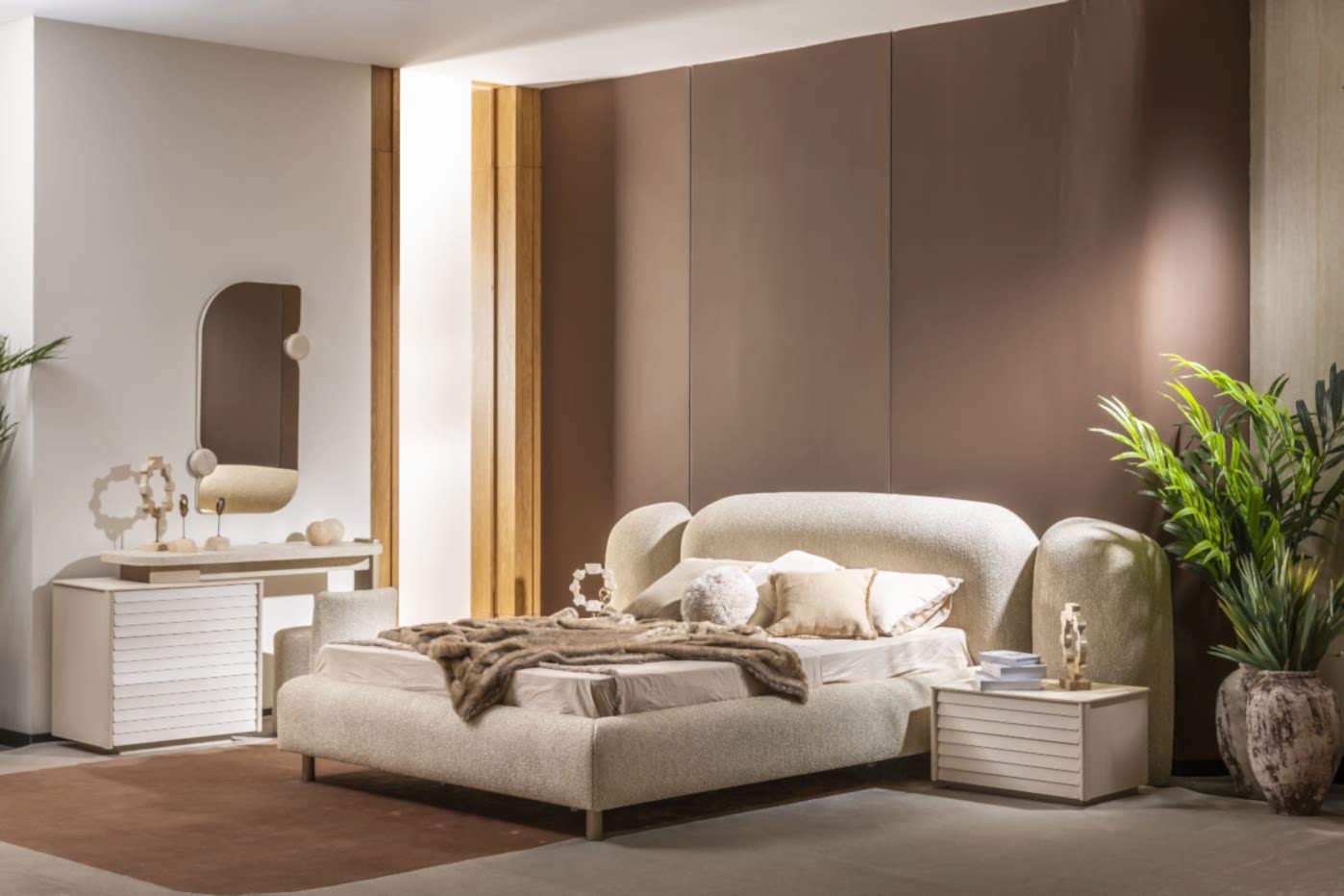 YATAK ODASI TAKIMI: Karyola, karyola başucu, 2 adet komodin, gardorop, şifonyer, şifonyer aynasından oluşmaktadır.