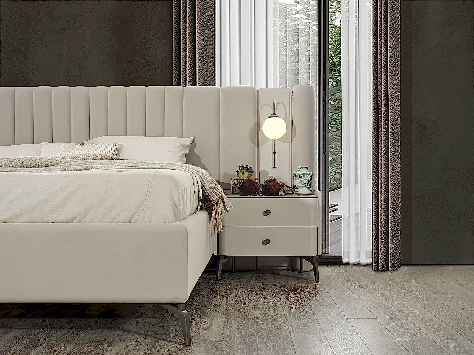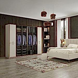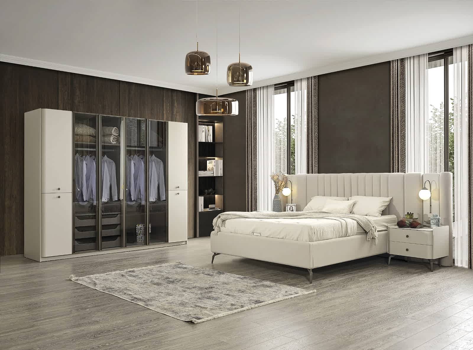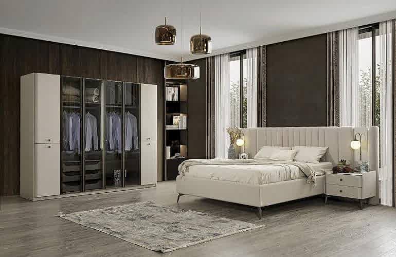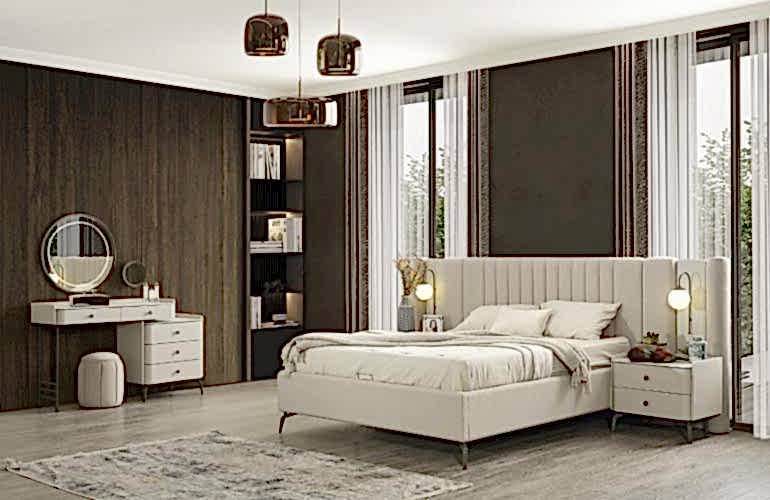 YATAK ODASI TAKIMI: Karyola, karyola başucu, 2 adet komodin, gardorop, şifonyer, şifonyer aynasından oluşmaktadır.