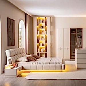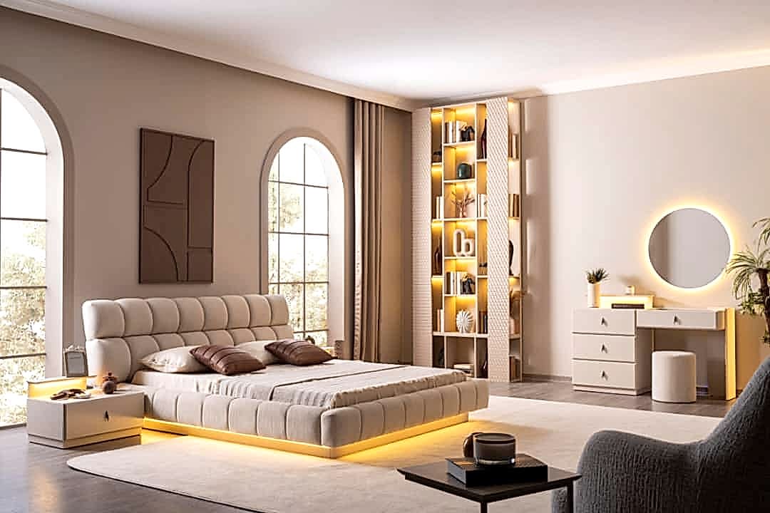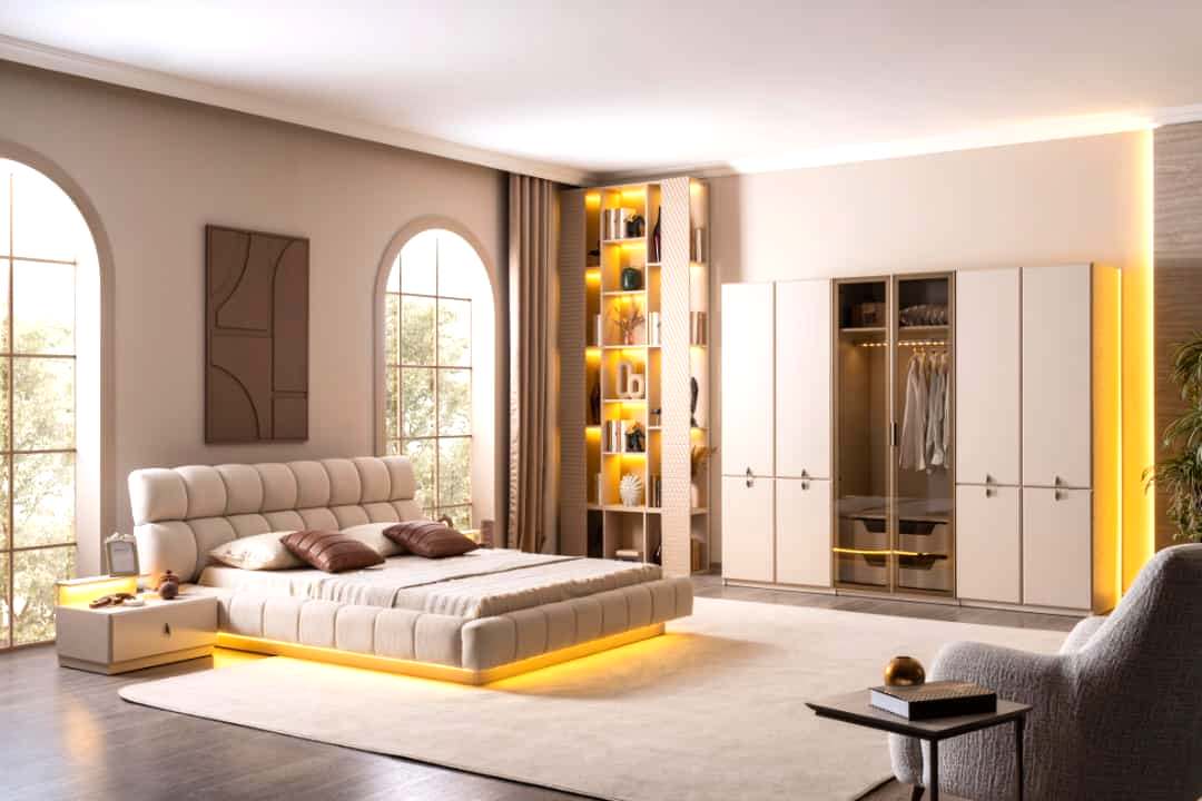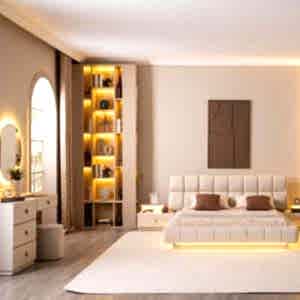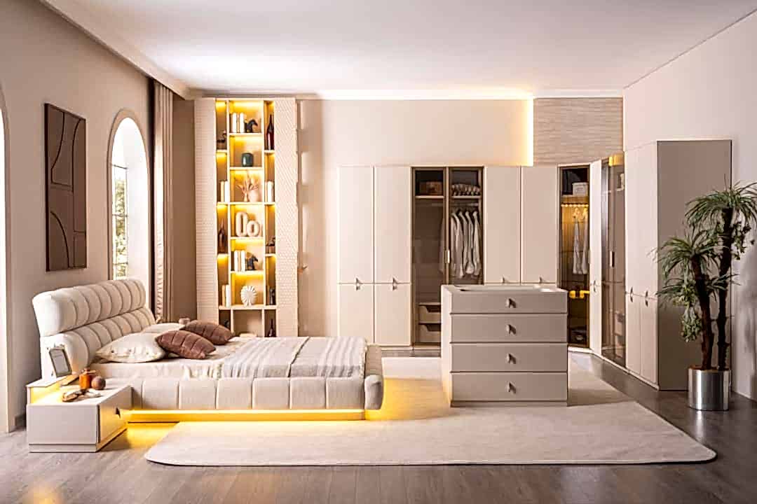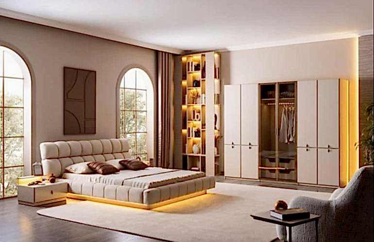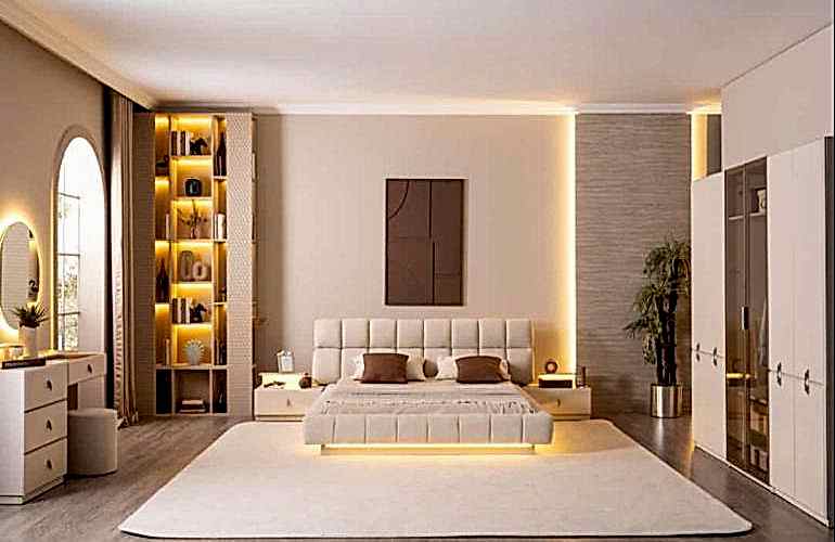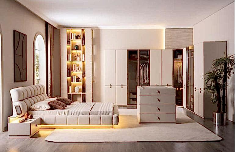YATAK ODASI TAKIMI: Karyola, karyola başucu, 2 adet komodin, gardorop, şifonyer, şifonyer aynasından oluşmaktadır.