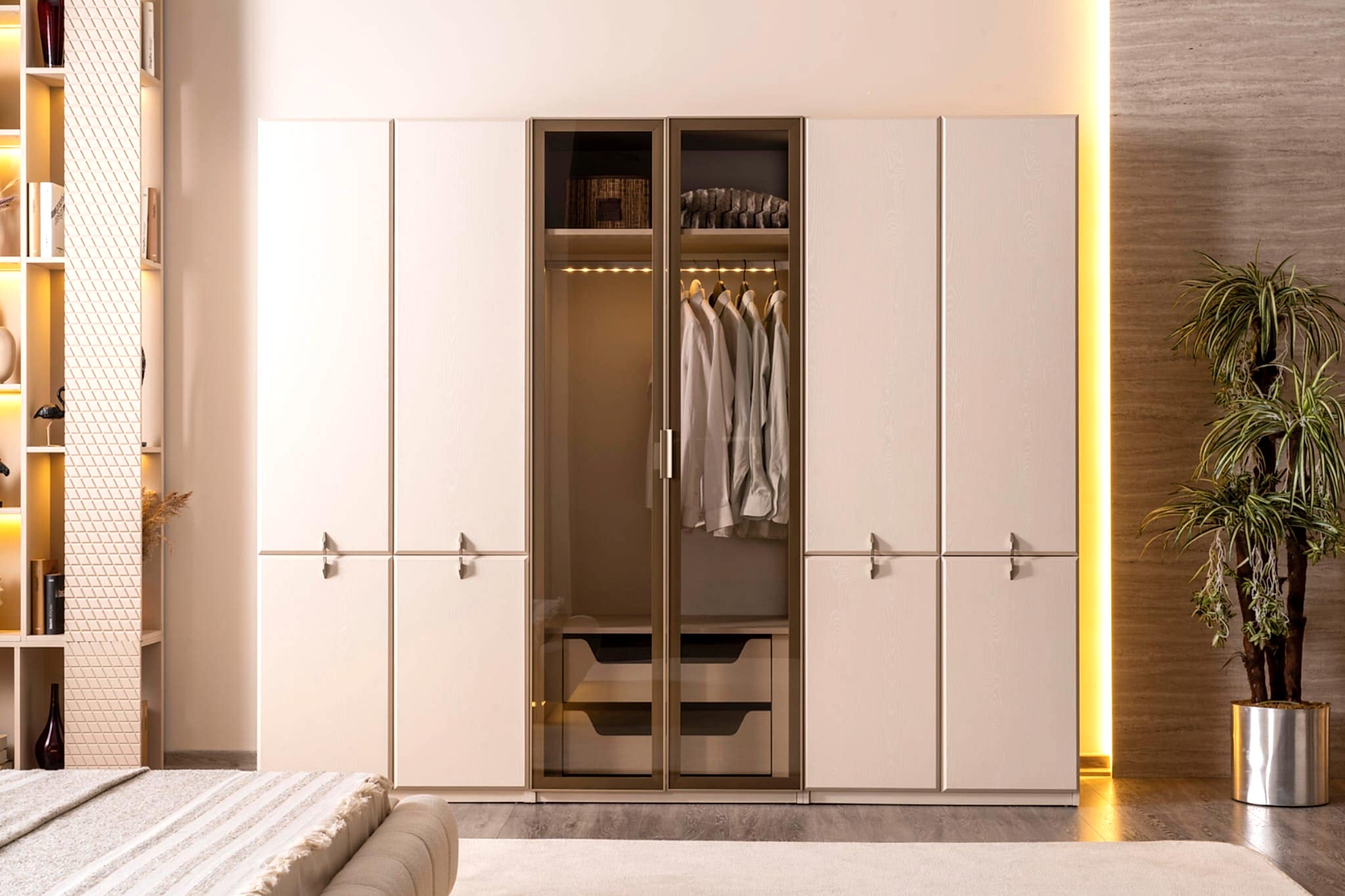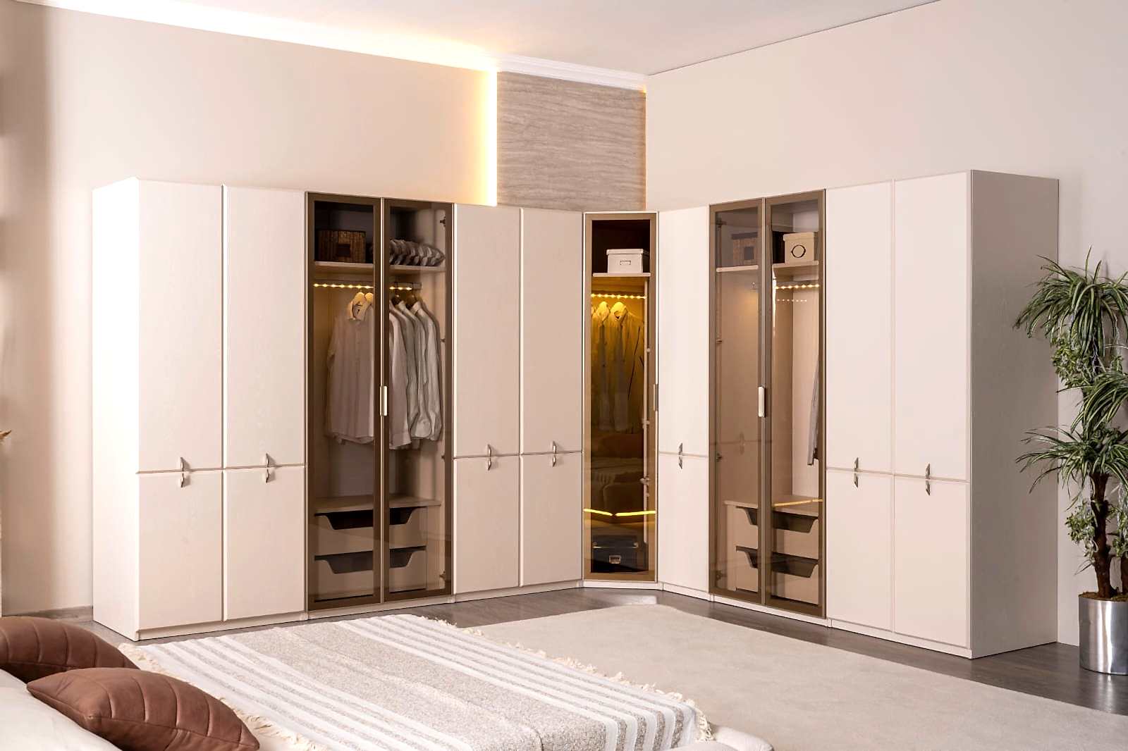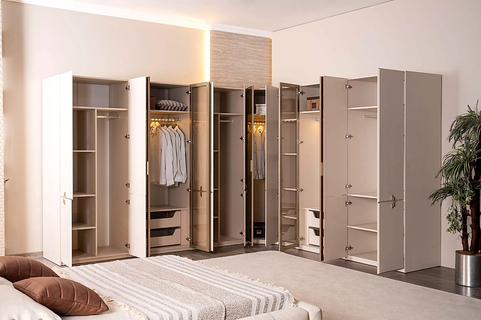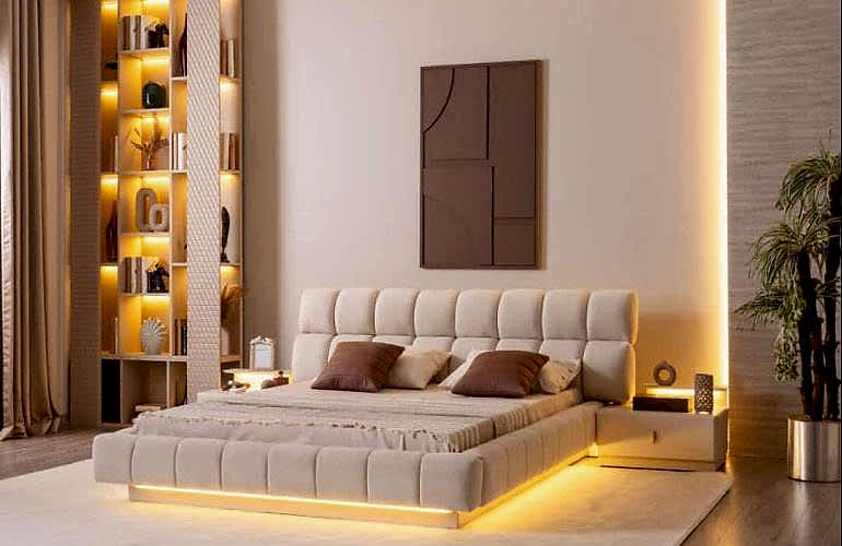 YATAK ODASI TAKIMI: Karyola, karyola başucu, 2 adet komodin, gardorop, şifonyer, şifonyer aynasından oluşmaktadır.