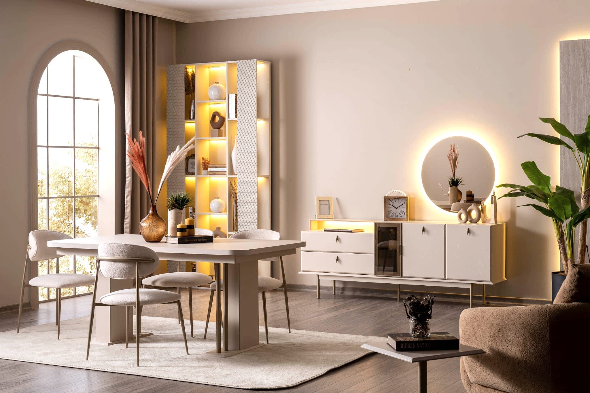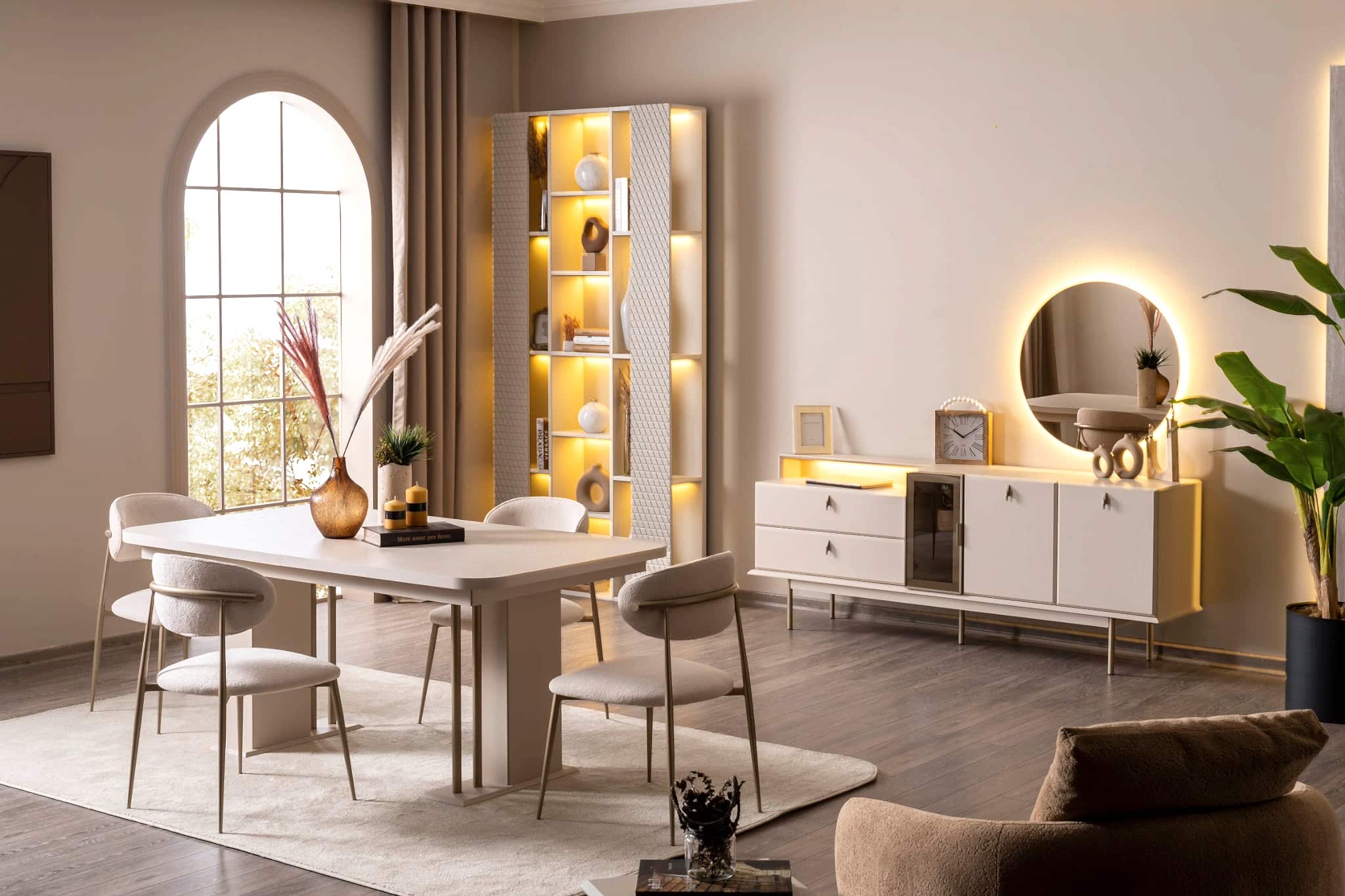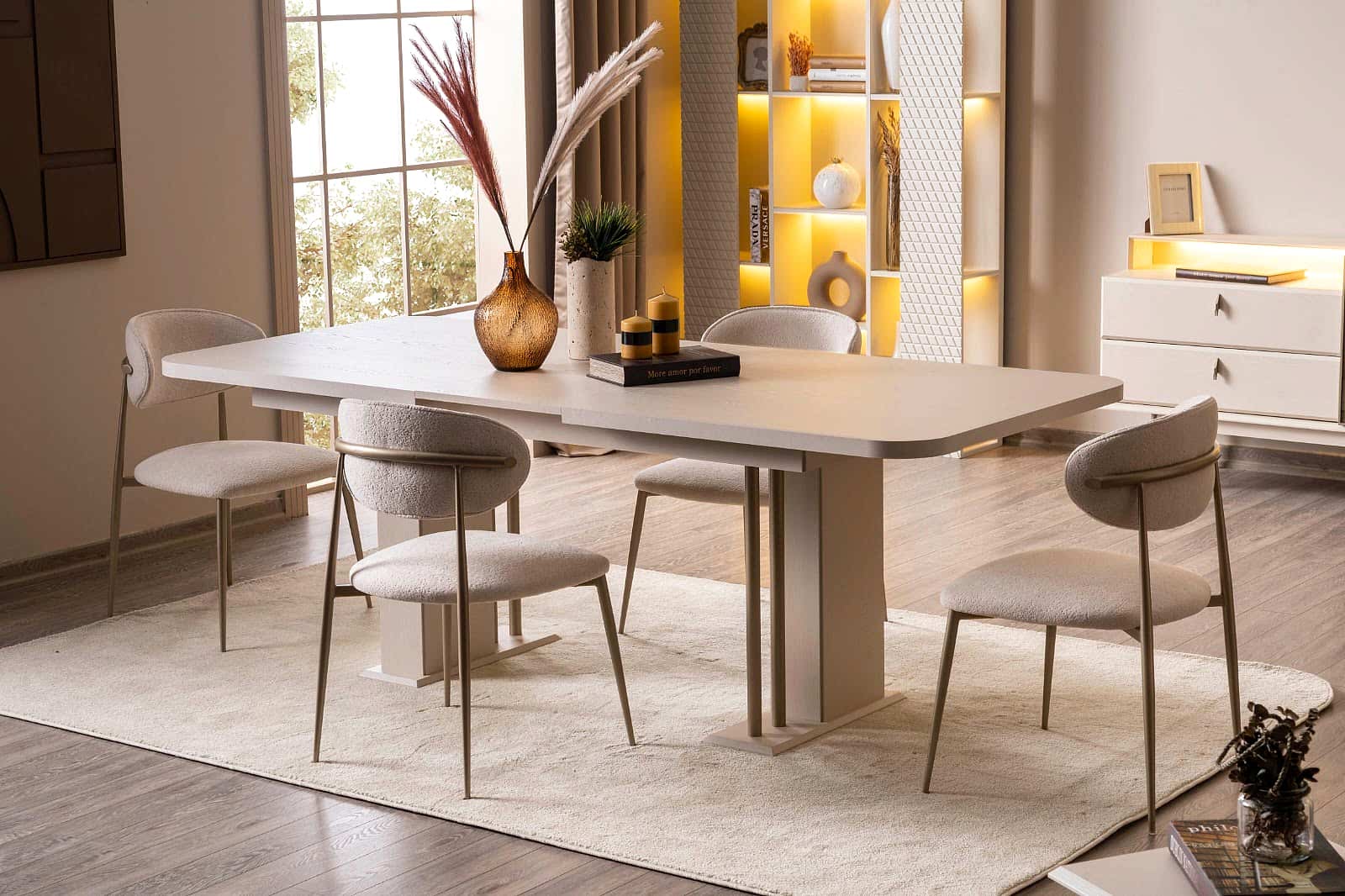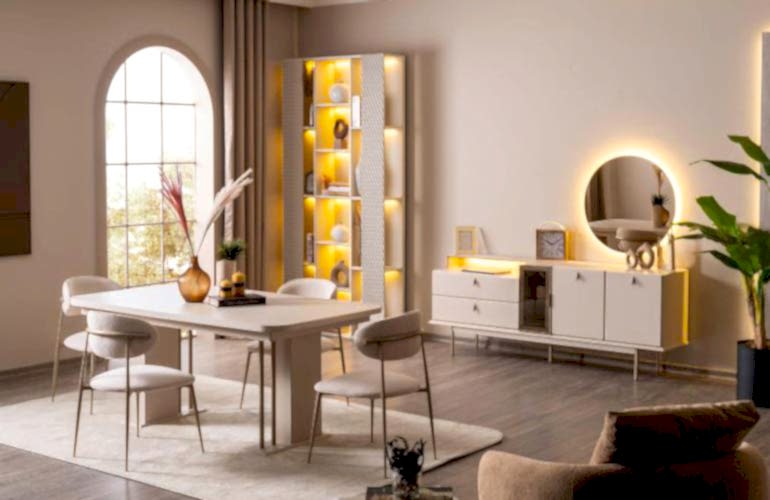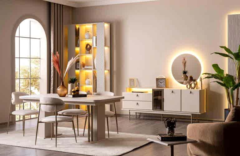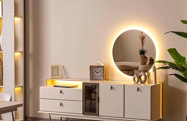 YEMEK ODASI TAKIMI: Konsol ,konsol aynası, yemek masası ve 4 adet polo gold sandalyelidir.